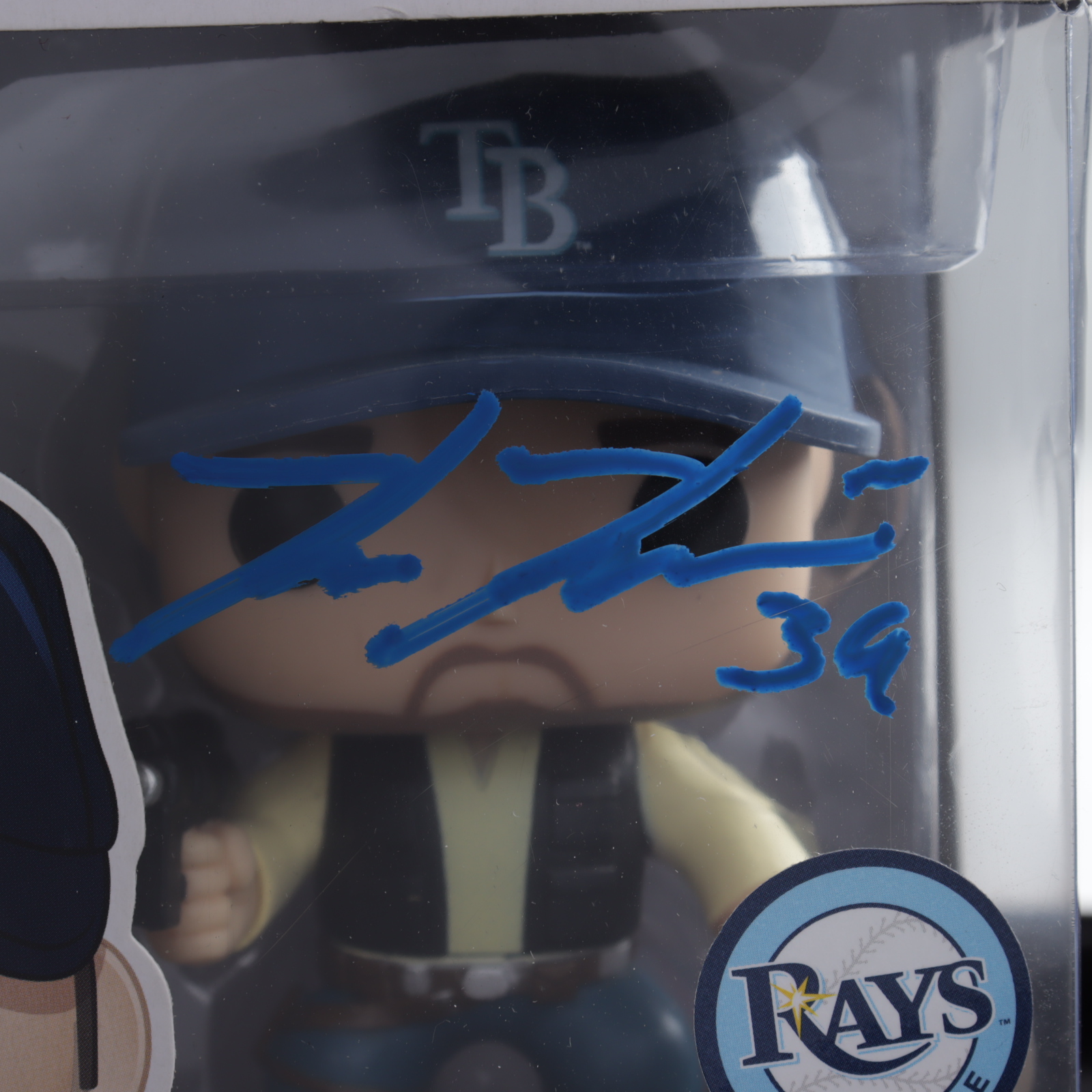 Funko Pop! Vinyl figure measures approximately 4" tall and has been hand-signed on the packaging by Kevin Kiermaier (Tampa Bay Rays). Please note, the packaging shows signs of handling. See photos for details.
