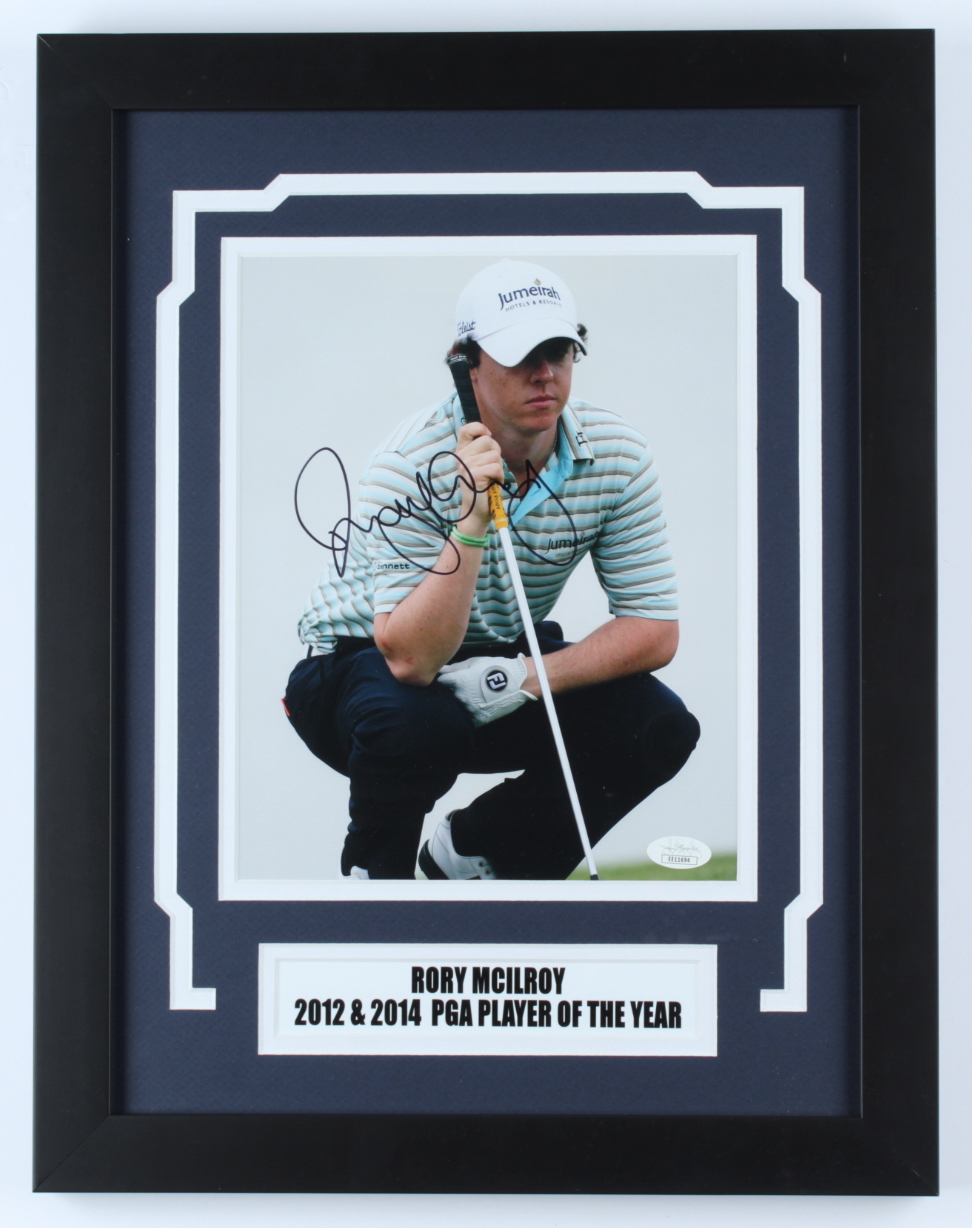 Custom frame measures 14" x 18" in size and features a photo that has been hand-signed by Rory McIlroy.