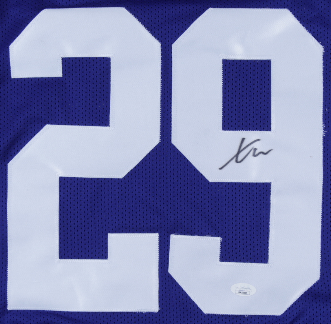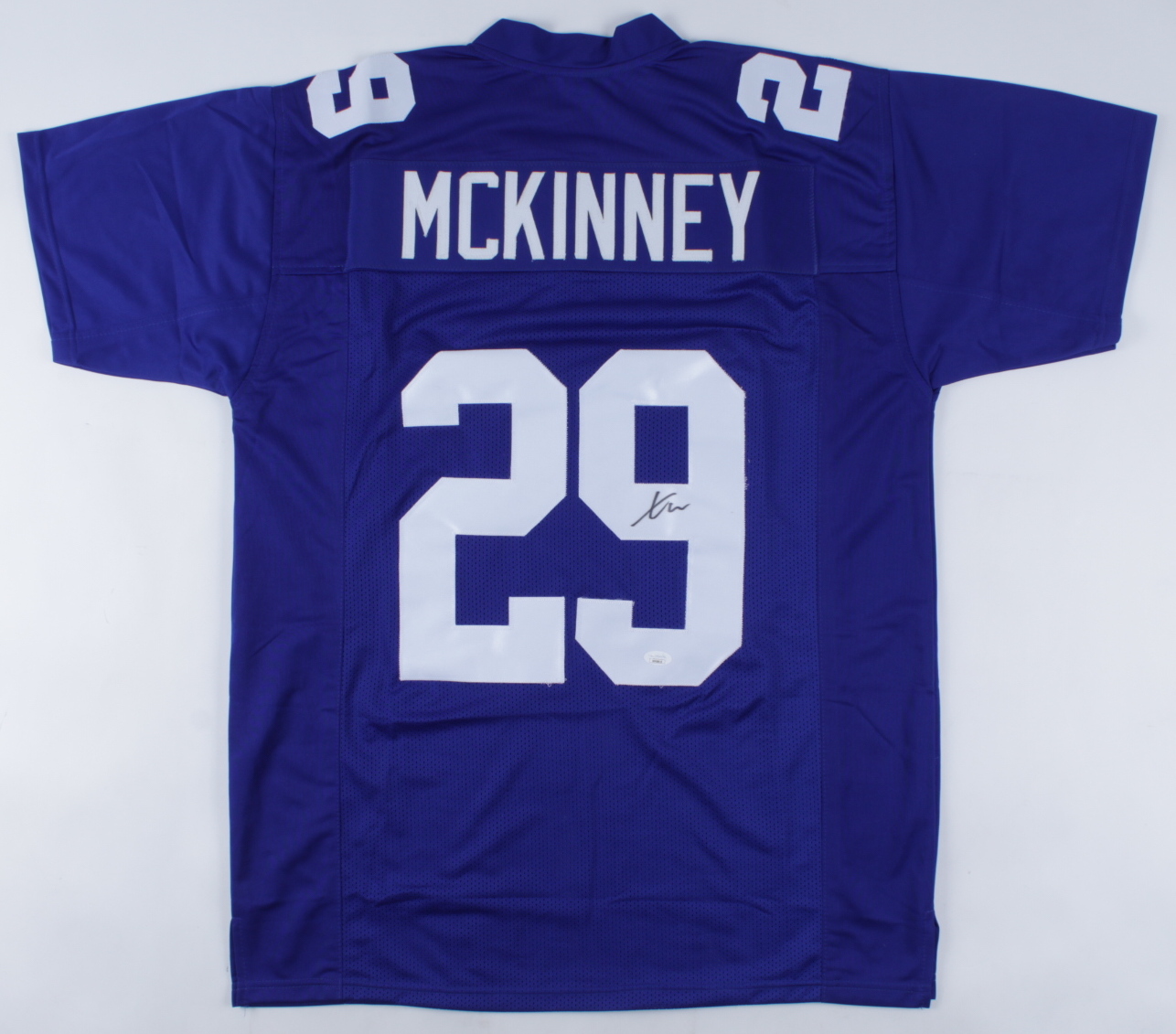 Custom on-field style jersey. Everything is sewn on, size XL. Has been hand-signed by Xavier McKinney.