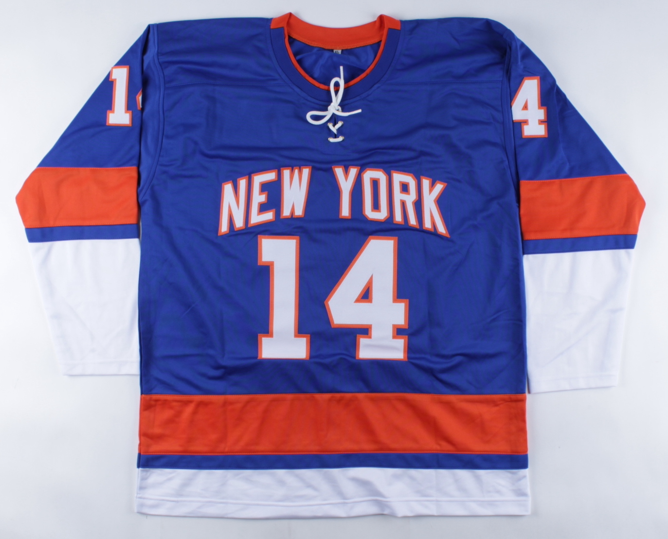 Custom on-ice style jersey. Everything is sewn on, size XL. Hand-signed by Tom Kuhnhackl.