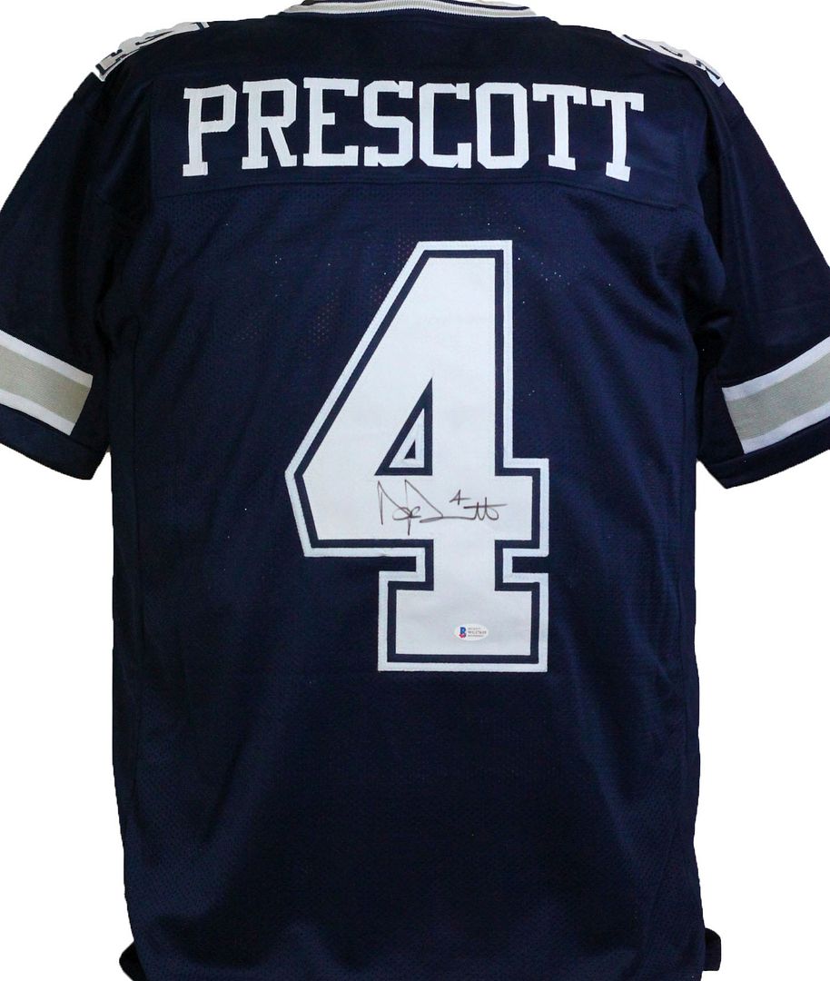 Custom on-field style jersey. Everything is sewn on, size XL. Hand-signed by Dak Prescott.