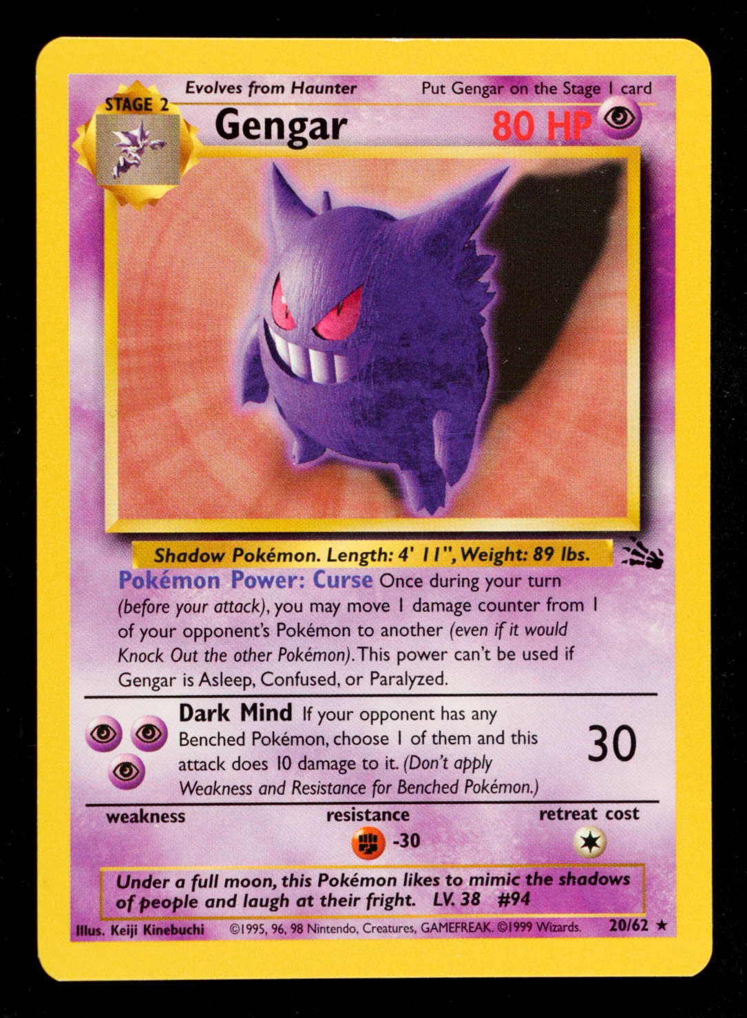 Gengar 1999 Pokemon Fossil Unlimited #20