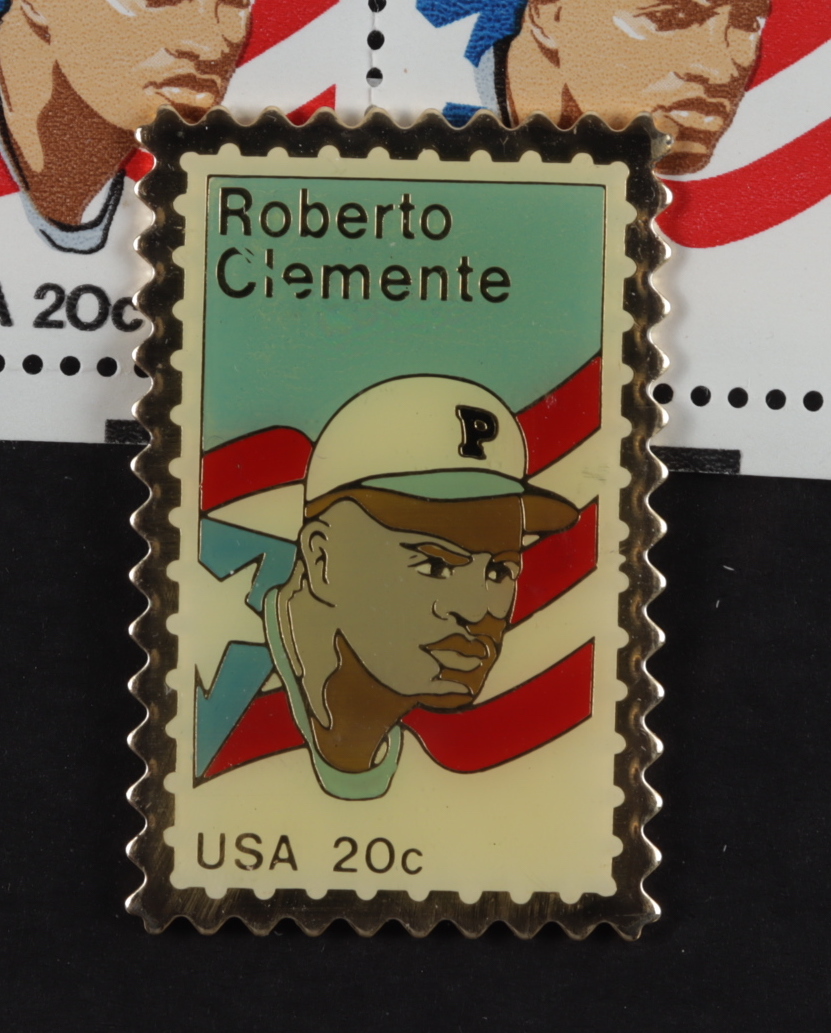 Roberto Clemente 13x16 Custom Framed Stamp Display with Original Metal Stamp Pin (See Description)