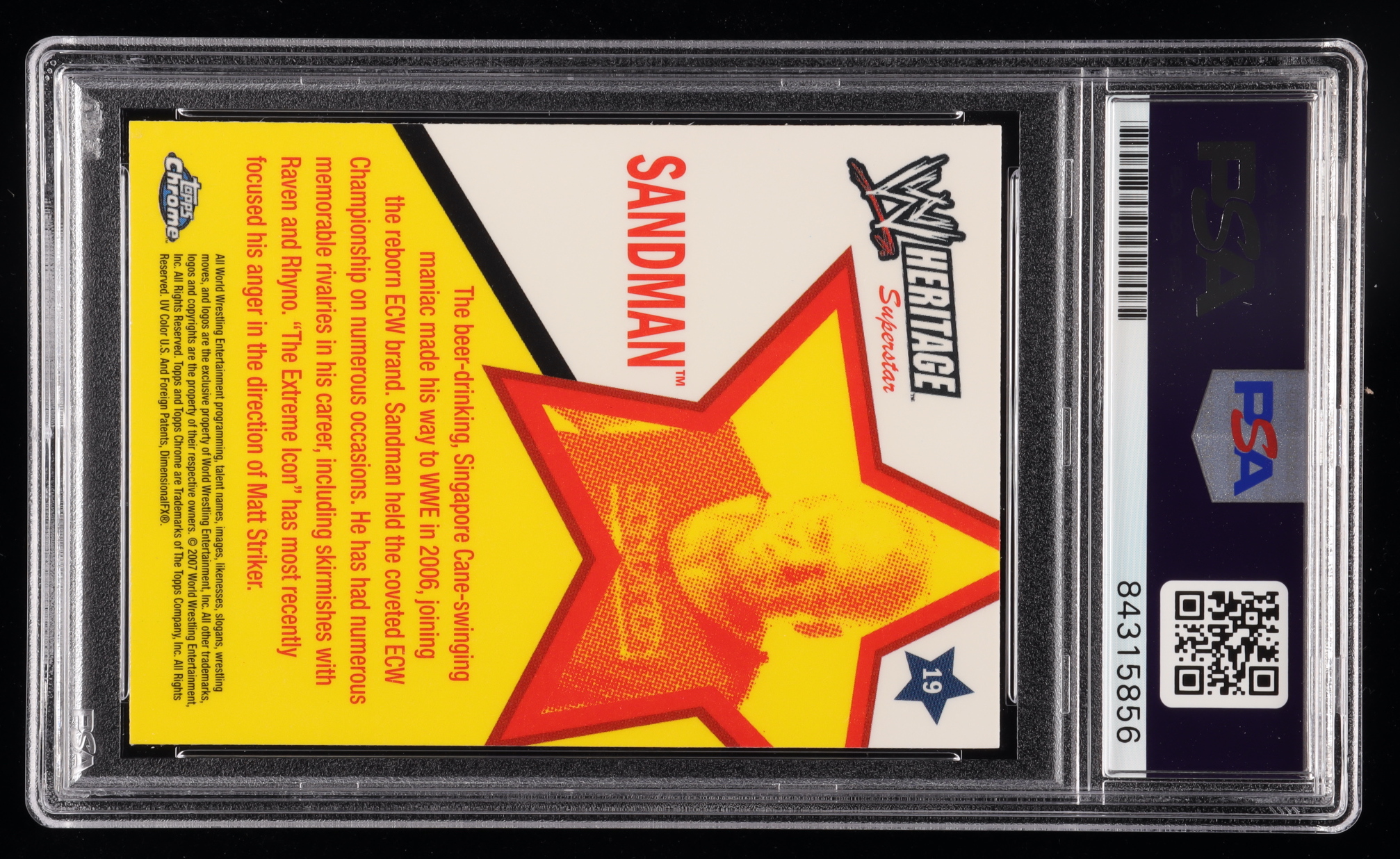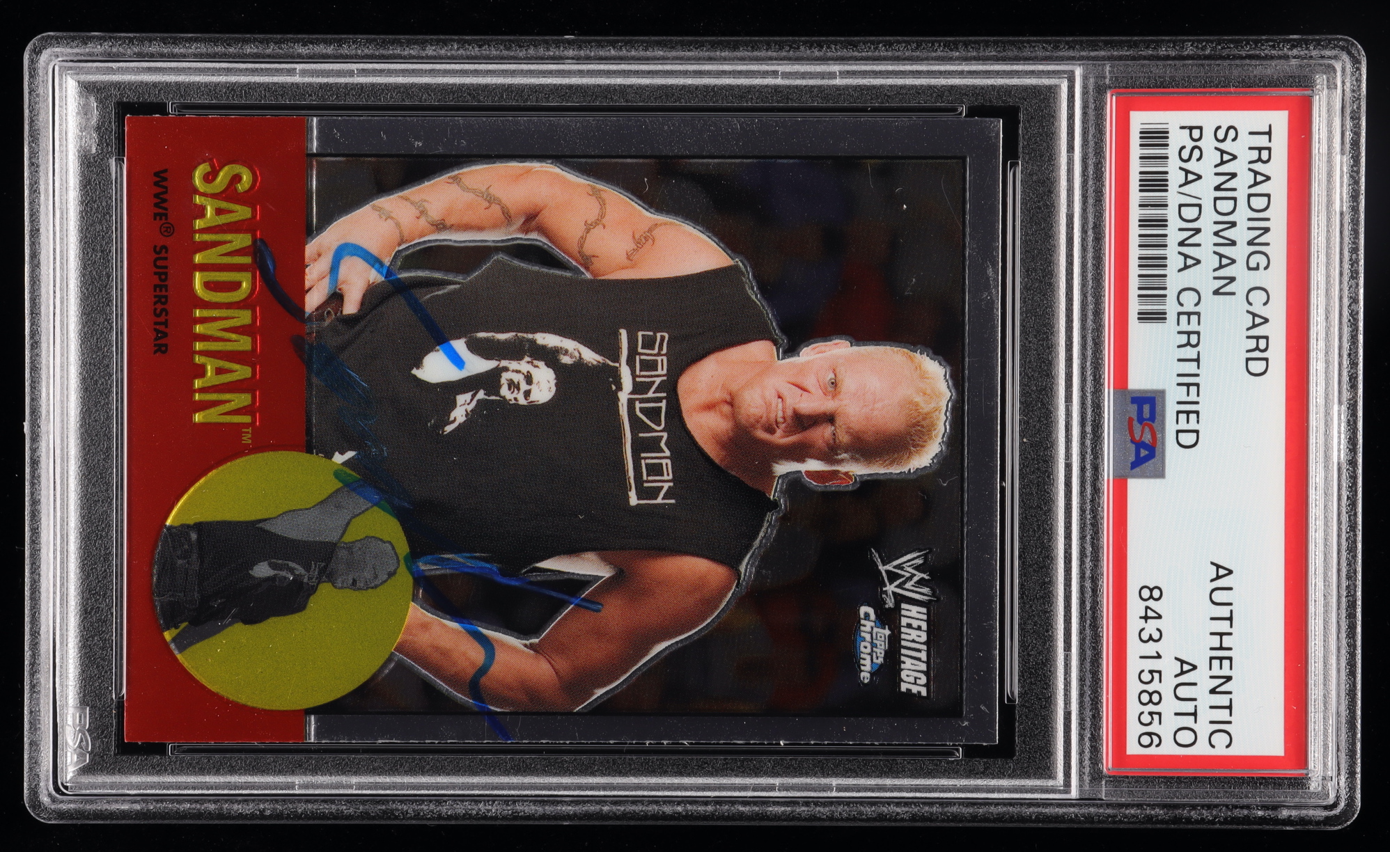 Sandman Signed 2007 Topps Heritage II Chrome WWE #19 (PSA Encapsulated)