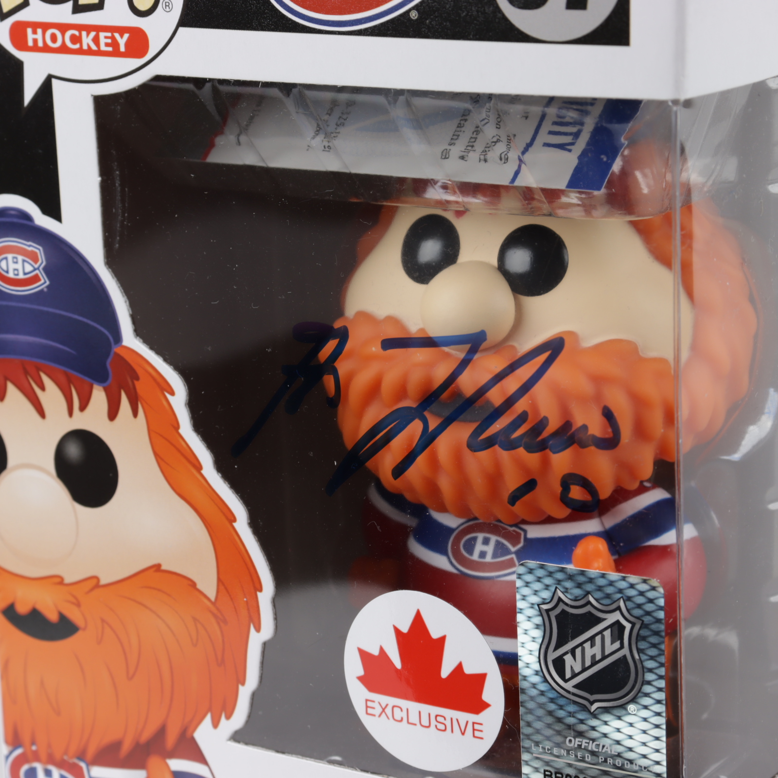 Funko Pop! vinyl figure measures approximately 4" tall and the packaging has been hand-signed by Guy Lafleur (Montreal Canadiens, HOF).