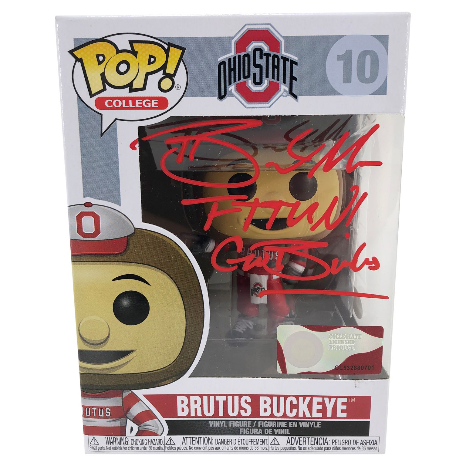 Braxton Miller Signed Ohio State Buckeyes #10 Brutus Buckeye Funko Pop! Vinyl Figure Inscribed "FTTUN" & "Go Bucks!" (JSA COA)
