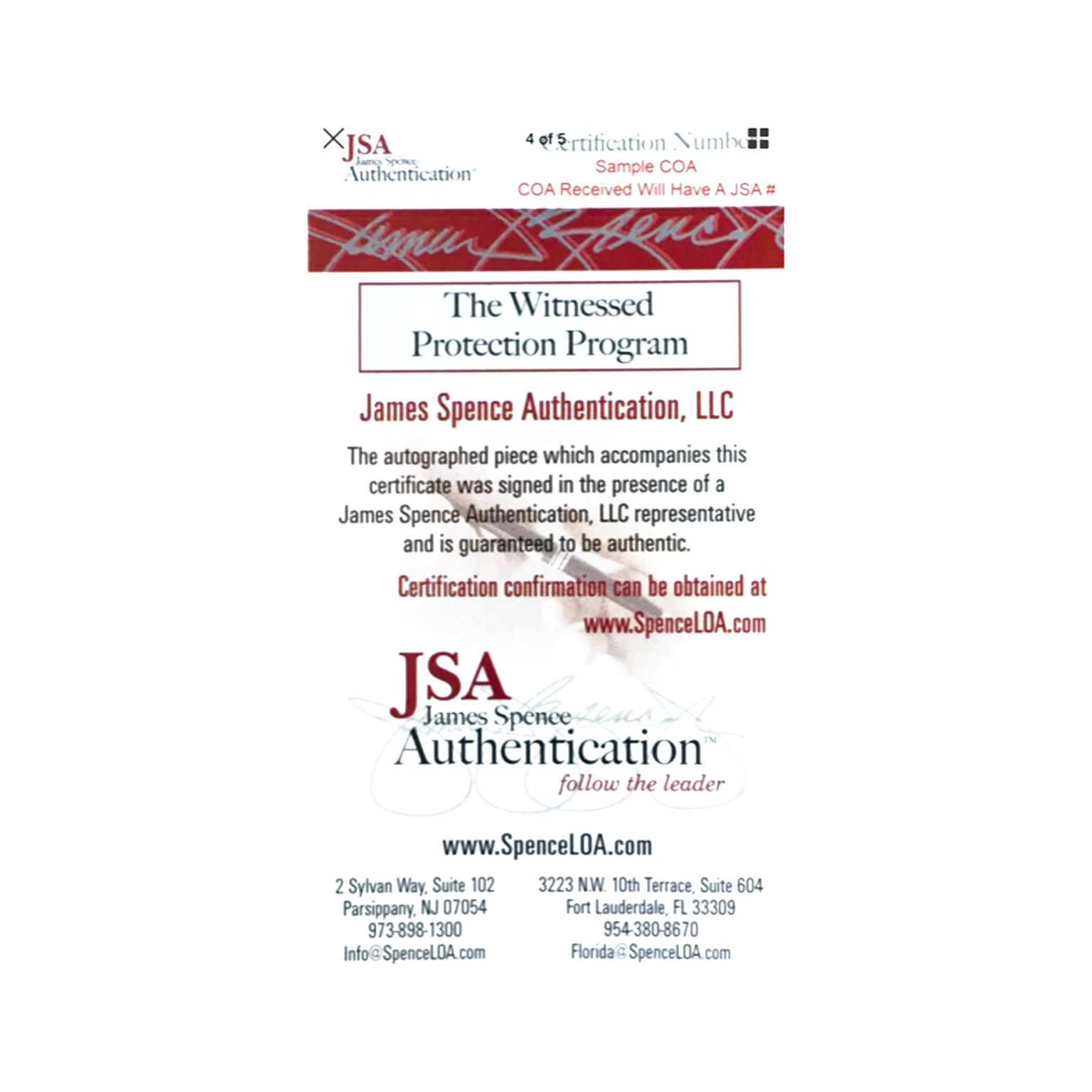 The lot / autograph(s) includes an official James Spence Authentication (JSA) hologram and matching COA for authenticity purposes. The signing of this item was witnessed by JSA.