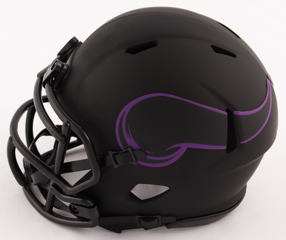 Minnesota Vikings Eclipse Alternate speed mini helmet has been hand-signed by Irv Smith Jr.