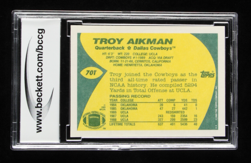 Troy Aikman 1989 Topps Traded #70T RC (BCCG 10)