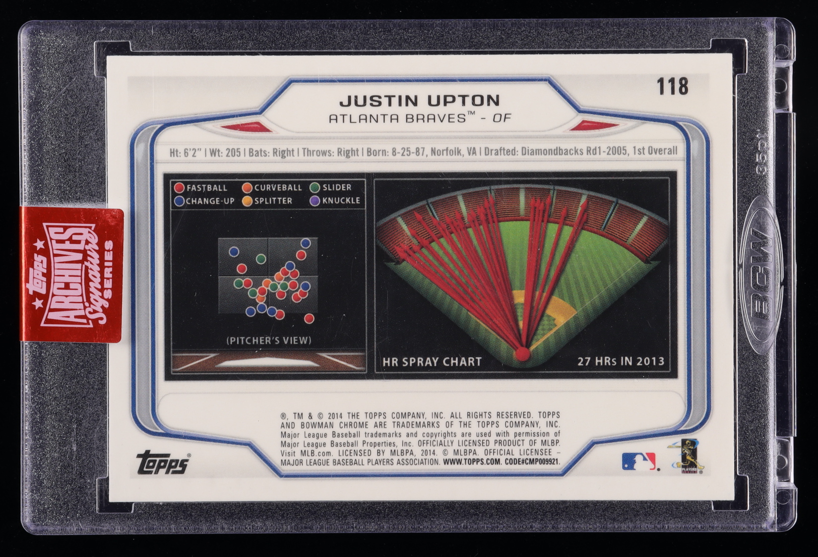 Justin Upton 2019 Topps Archives Signature Series 2014 Bowman Chrome #118 #174
