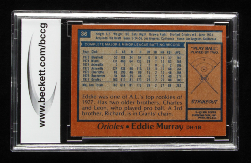 Eddie Murray 1978 Topps #36 RC (BCCG 9)