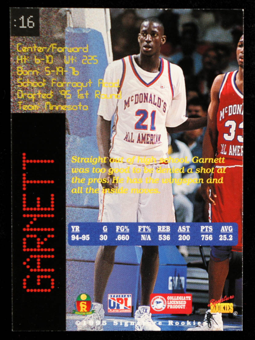 Kevin Garnett 1995 Signature Rookies Prime Signatures #16 #660/3000