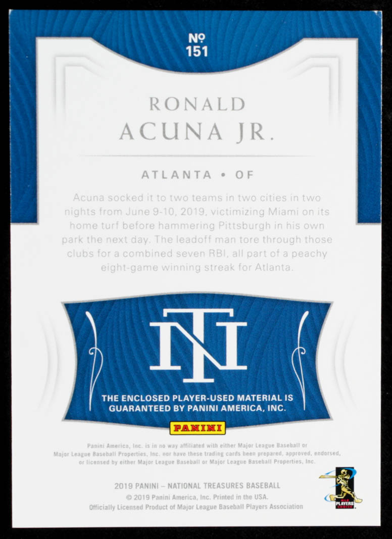 Ronald Acuna Jr. 2019 Panini National Treasures #151 Jersey #80/99