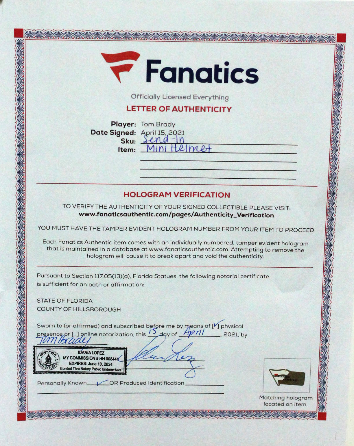 Authentication: Fanatics LOA