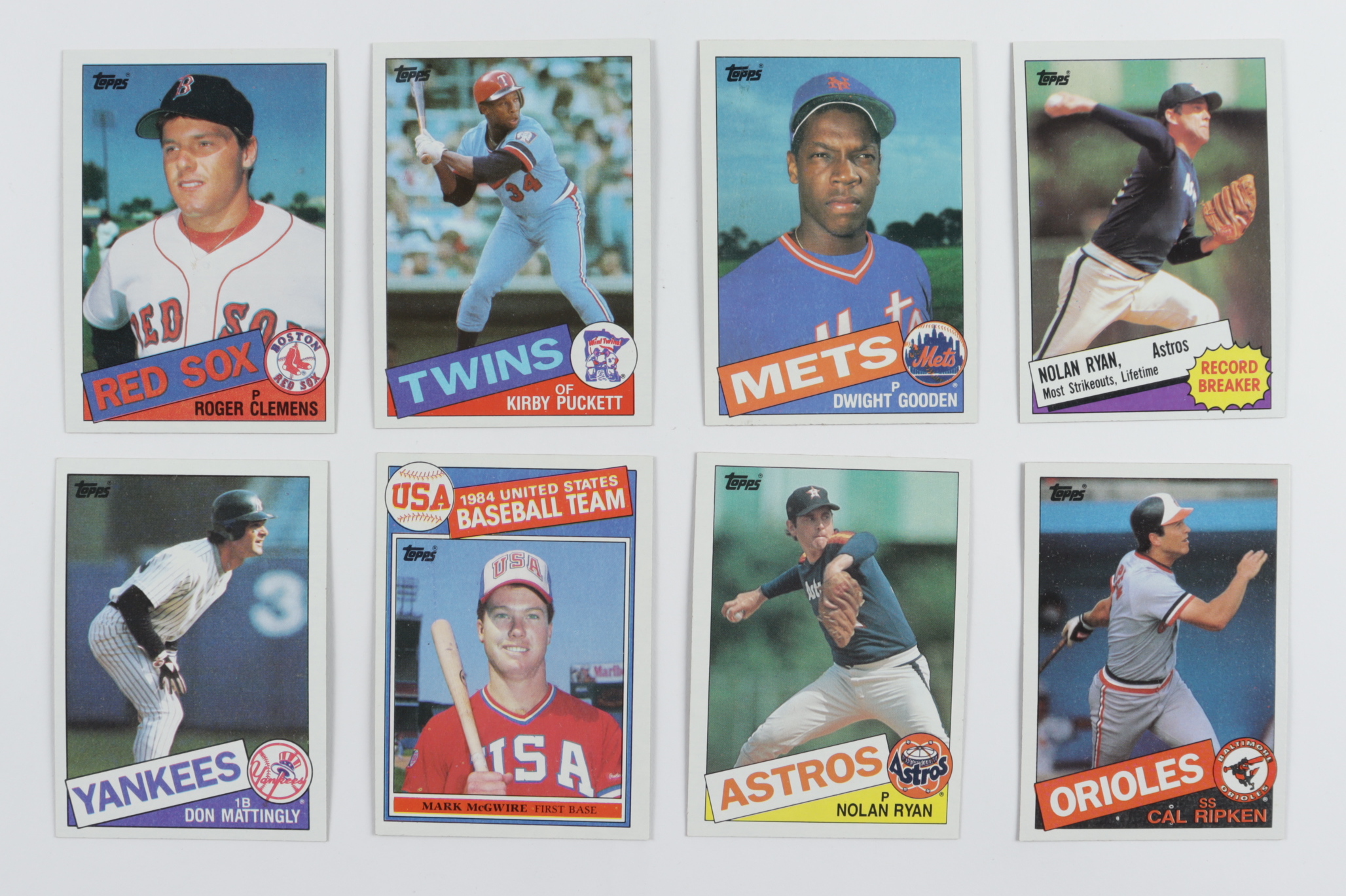 1985 Topps Complete Set of (792) Baseball Cards with Mark McGwire #401 Olympics RC, Roger Clemens #181 RC, Kirby Puckett #536 RC