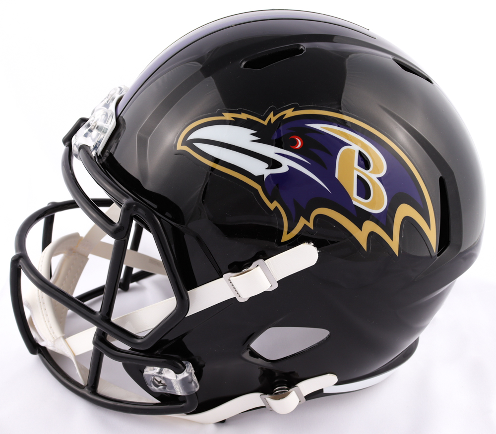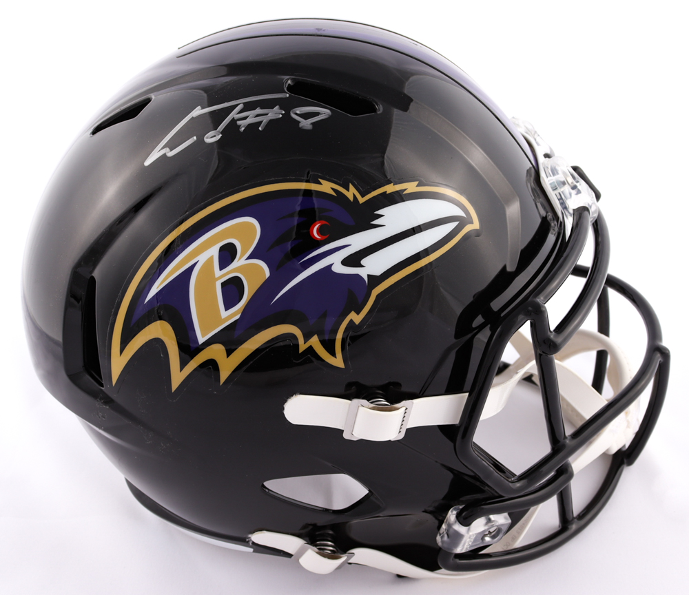 Riddell Baltimore Ravens full-size replica Speed helmet. Hand-signed by Lamar Jackson.