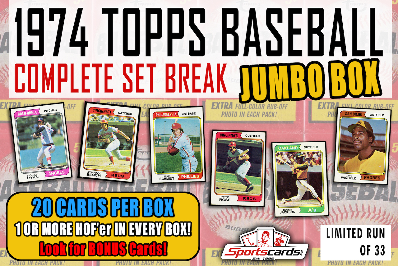 “1974 TOPPS BASEBALL COMPLETE SET BREAK” MYSTERY BOX– 20 CARDS PER BOX