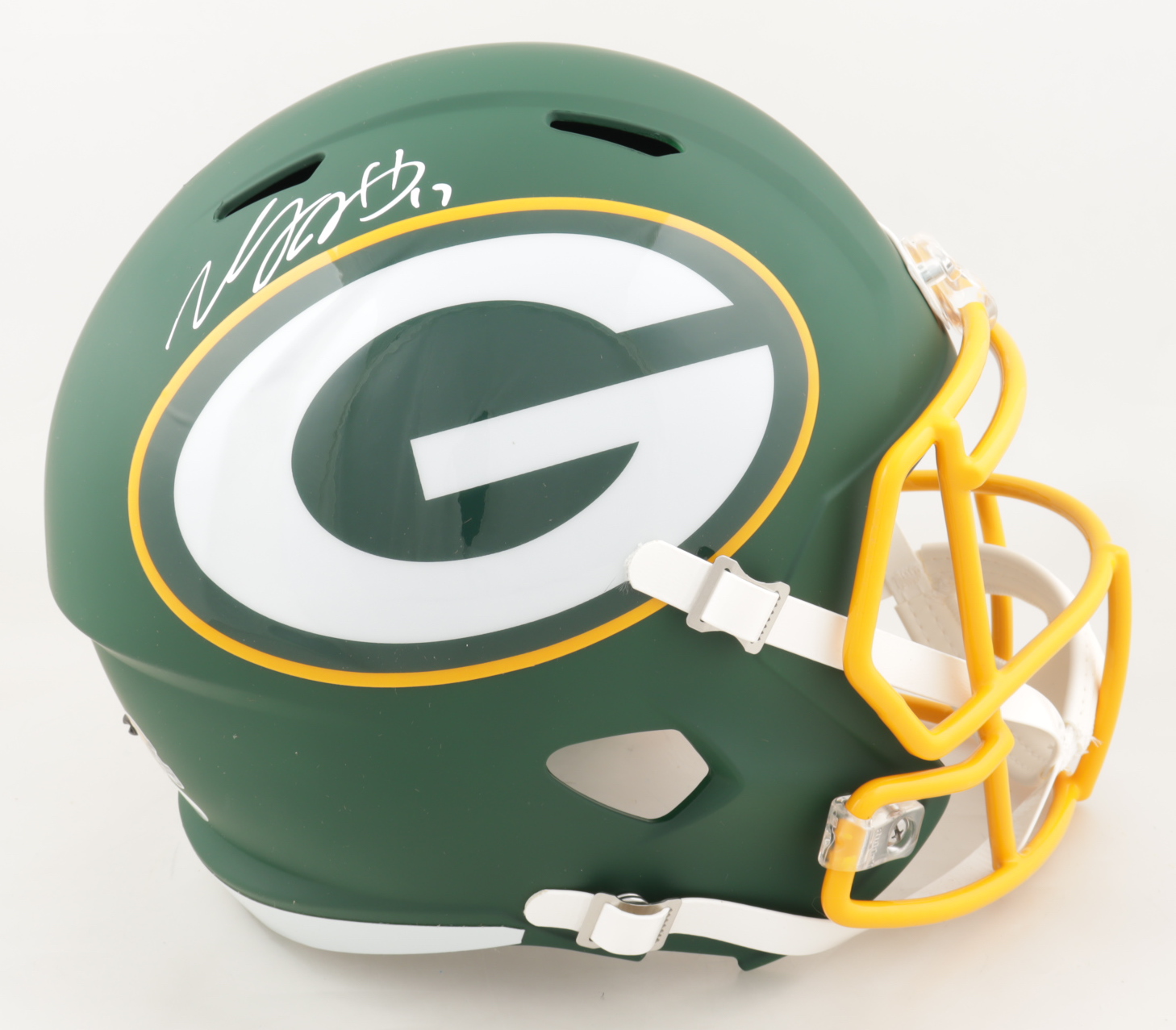 Riddell Green Bay Packers full-size replica AMP alternate speed helmet. Hand-signed by Davante Adams.