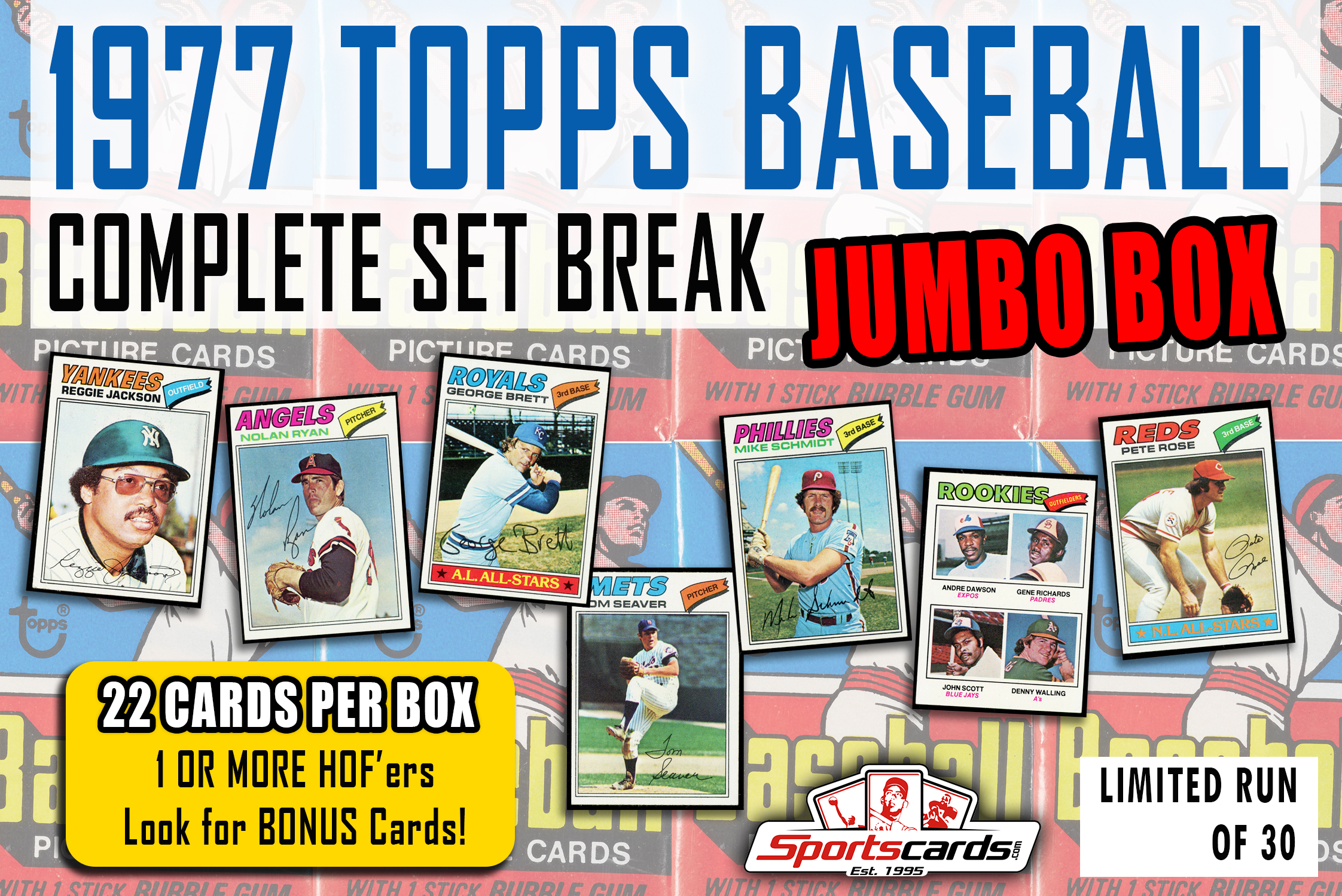 "1977 TOPPS BASEBALL COMPLETE SET BREAK” MYSTERY BOX– 22 CARDS PER BOX