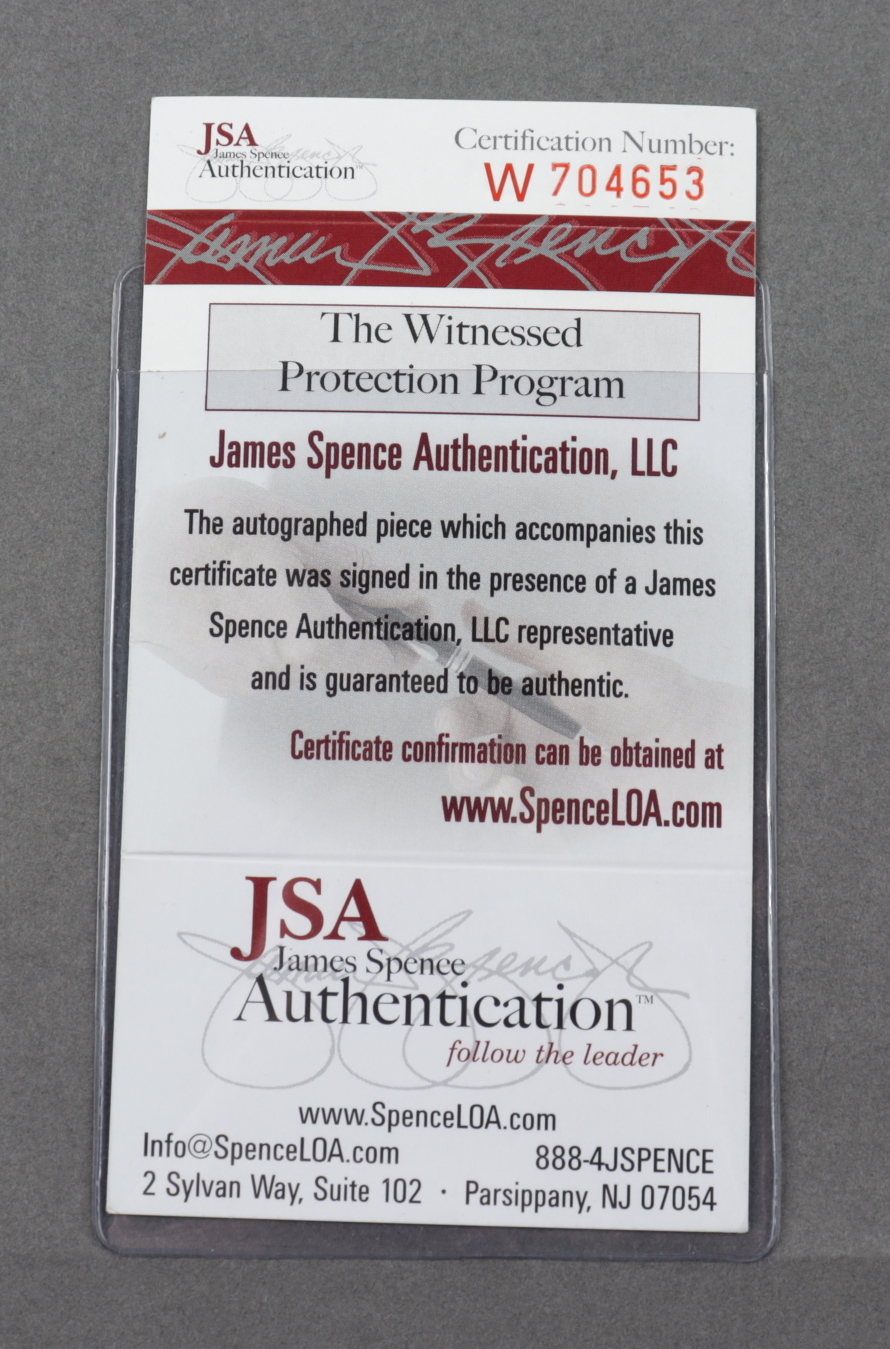 The lot / autograph(s) includes an official James Spence Authentication (JSA) hologram and matching COA for authenticity purposes. The signing of this item was witnessed by JSA.