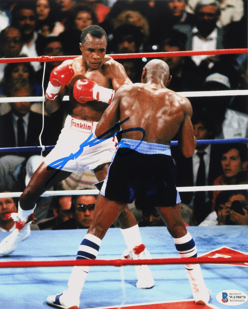Photo measures 8" x 10" in size and has been hand-signed by Sugar Ray Leonard (HOF).