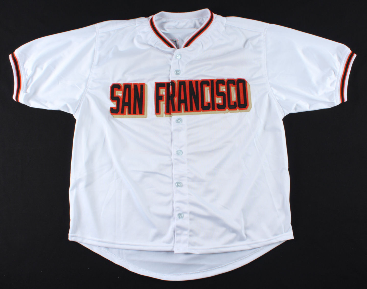 Custom on-field style jersey. Everything is sewn on, size XL. Has been hand-signed by Pablo Sandoval.