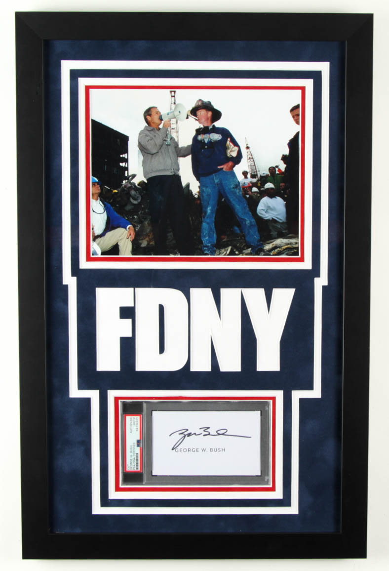 George W. Bush Signed 9/11 Ground Zero Speech Custom Framed Cut Display (PSA Encapsulated)
