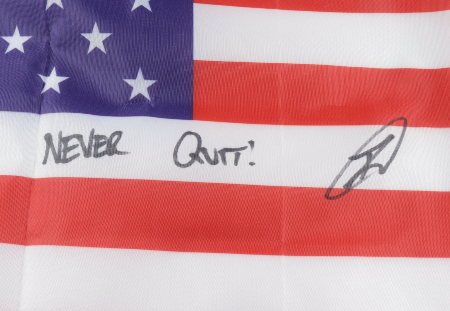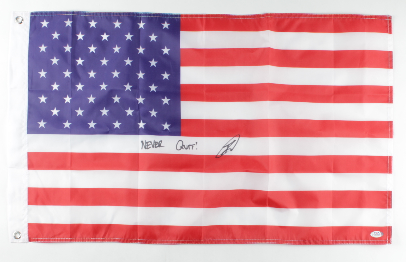Robert J. O'Neill Signed American Flag Inscribed "Never Quit!" (PSA COA)