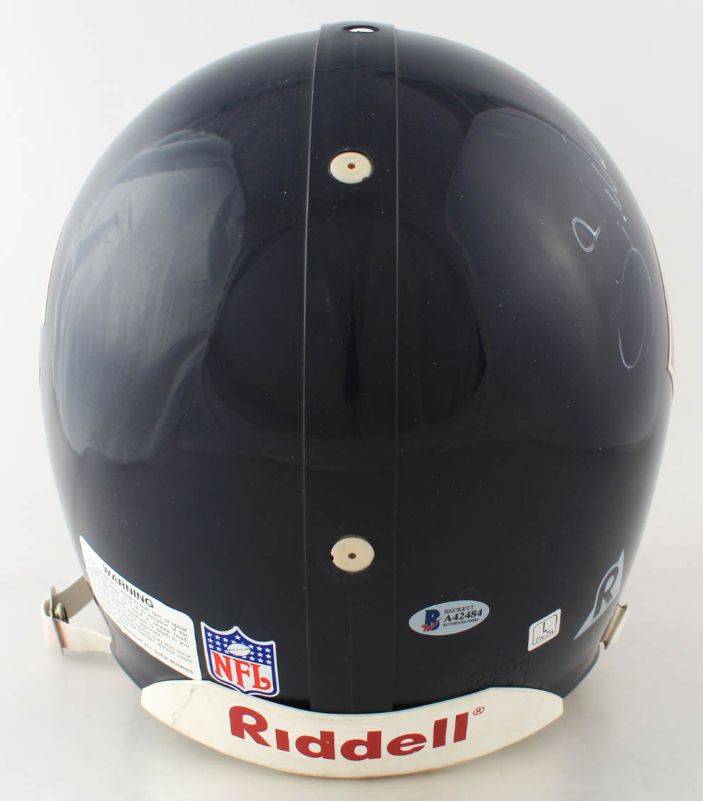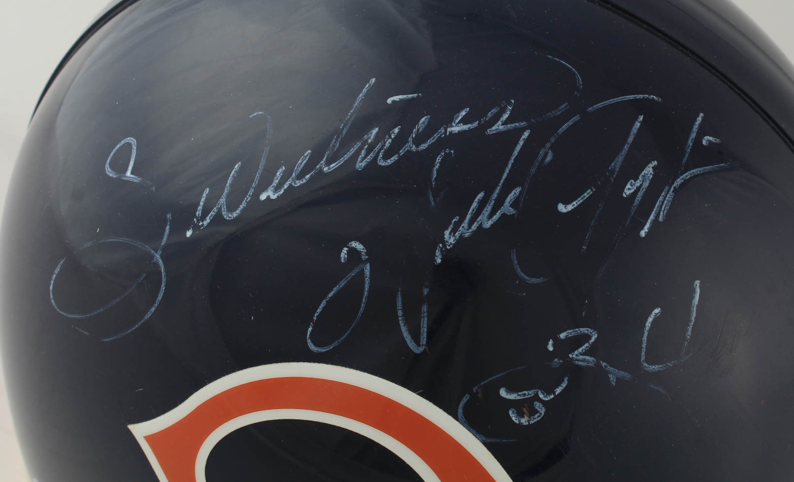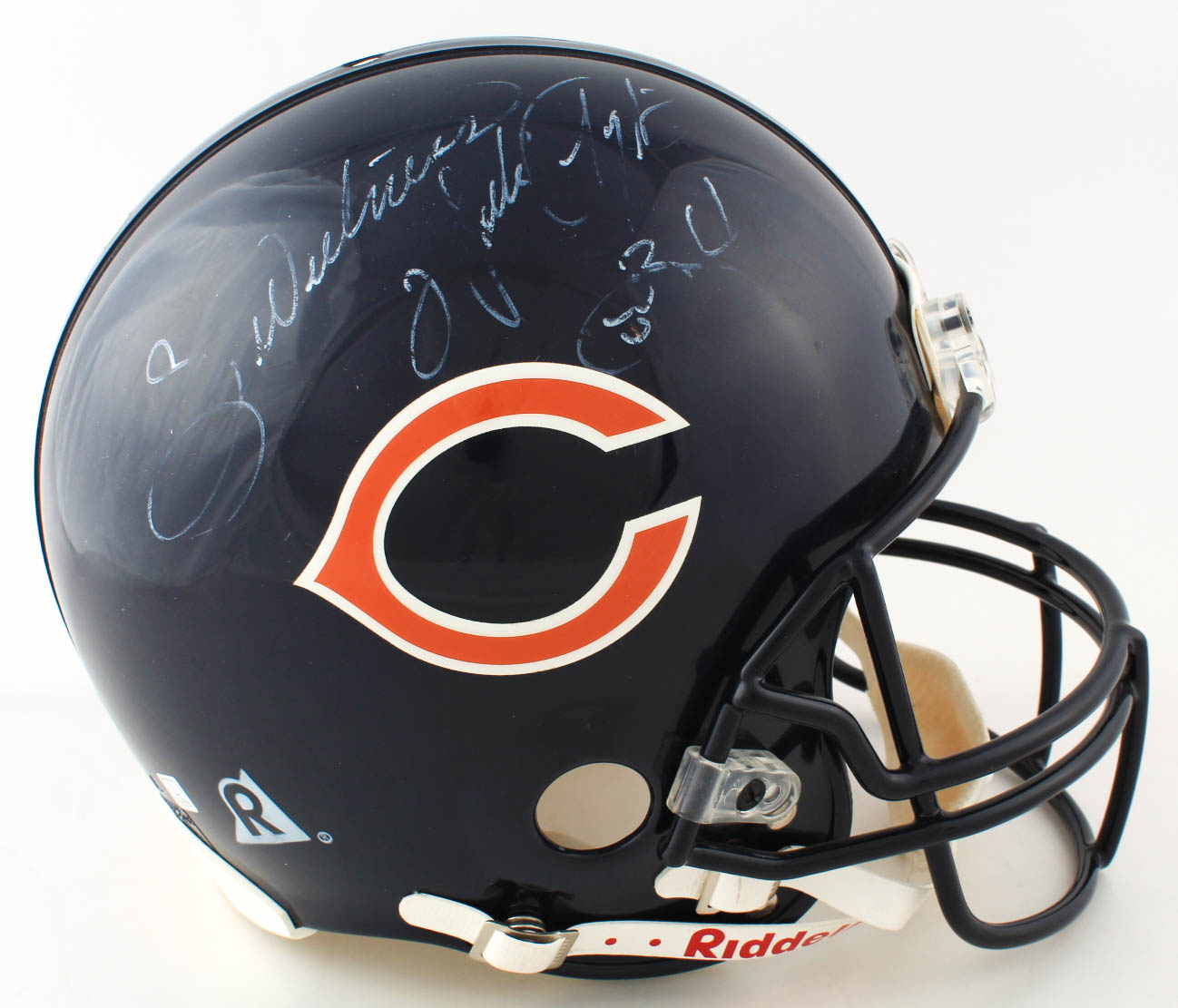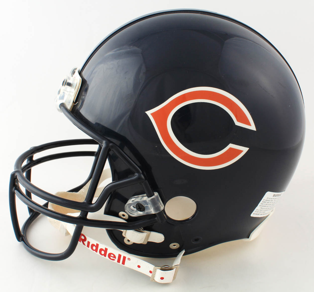 Riddell Chicago Bears full-size authentic on-field helmet has been hand-signed by Walter Payton (D. 1999, HOF). Please note, helmet shows stains and autograph has slightly faded.