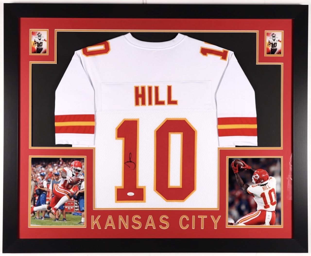 Custom frame measures approximately 35" x 43" in size and features a jersey that has been hand-signed by Tyreek Hill.