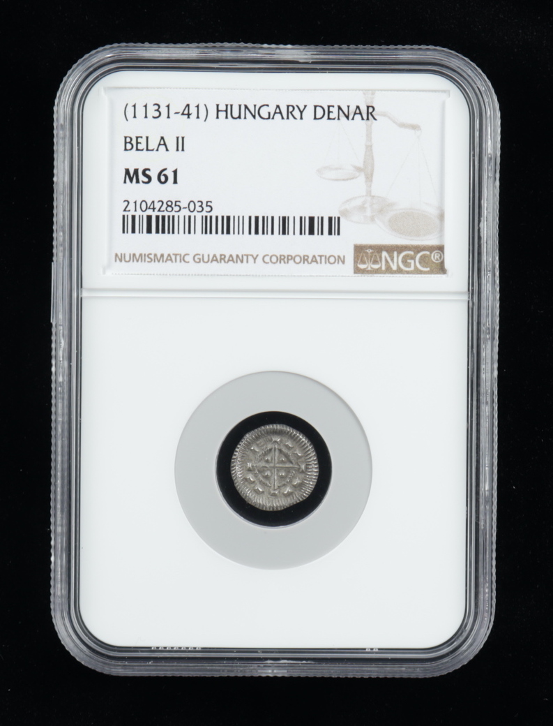 Bela II "the Blind King" (1131-1141) Silver Denar - Coin of the Medieval Crusades (NGC MS61)