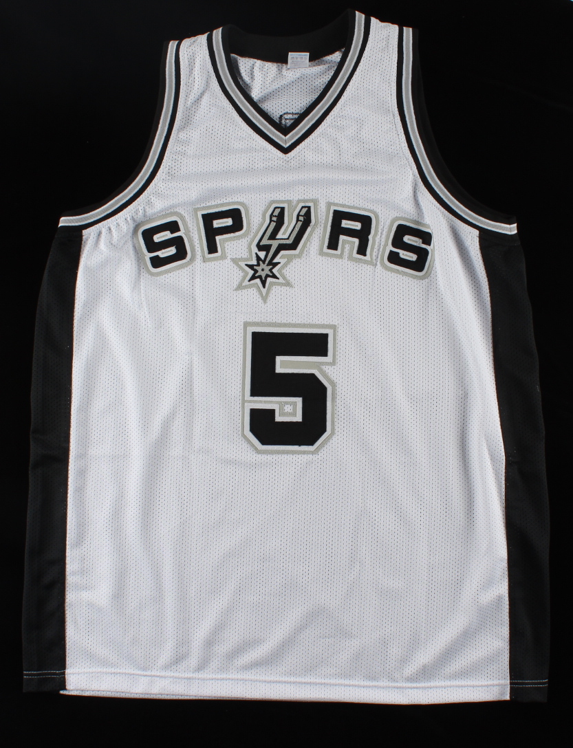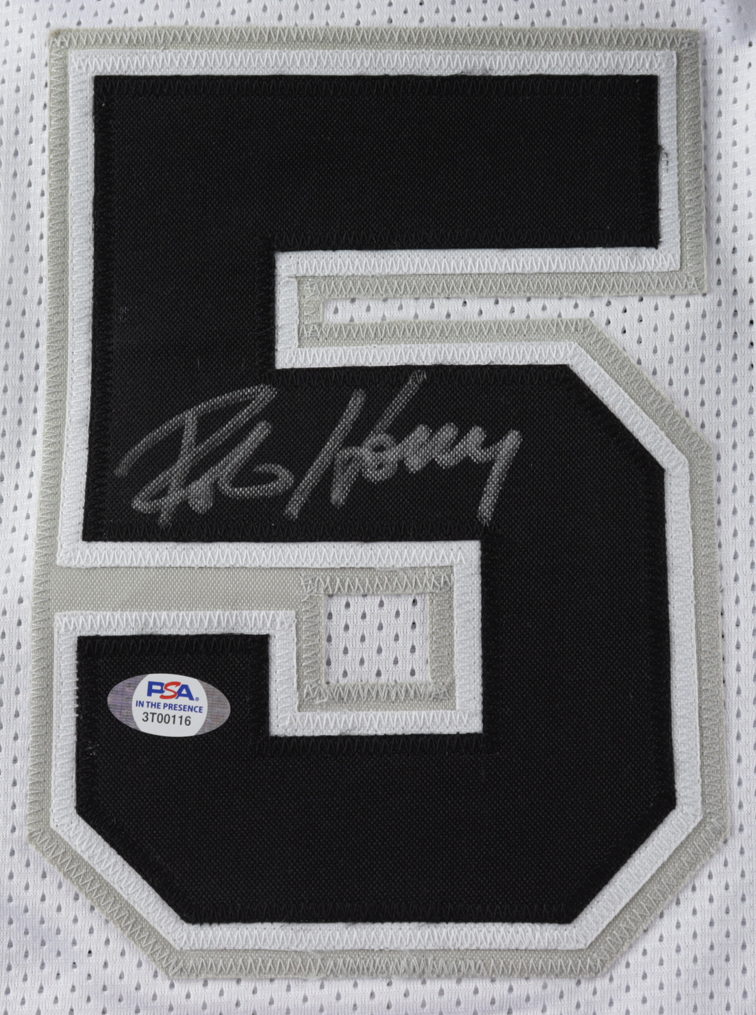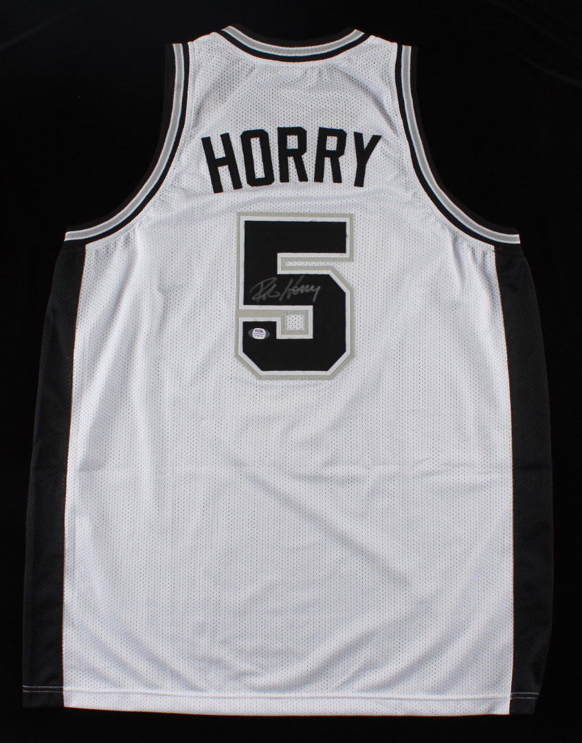 Custom on-court style jersey. Everything is sewn on, size XL. Has been hand-signed by Robert Horry.