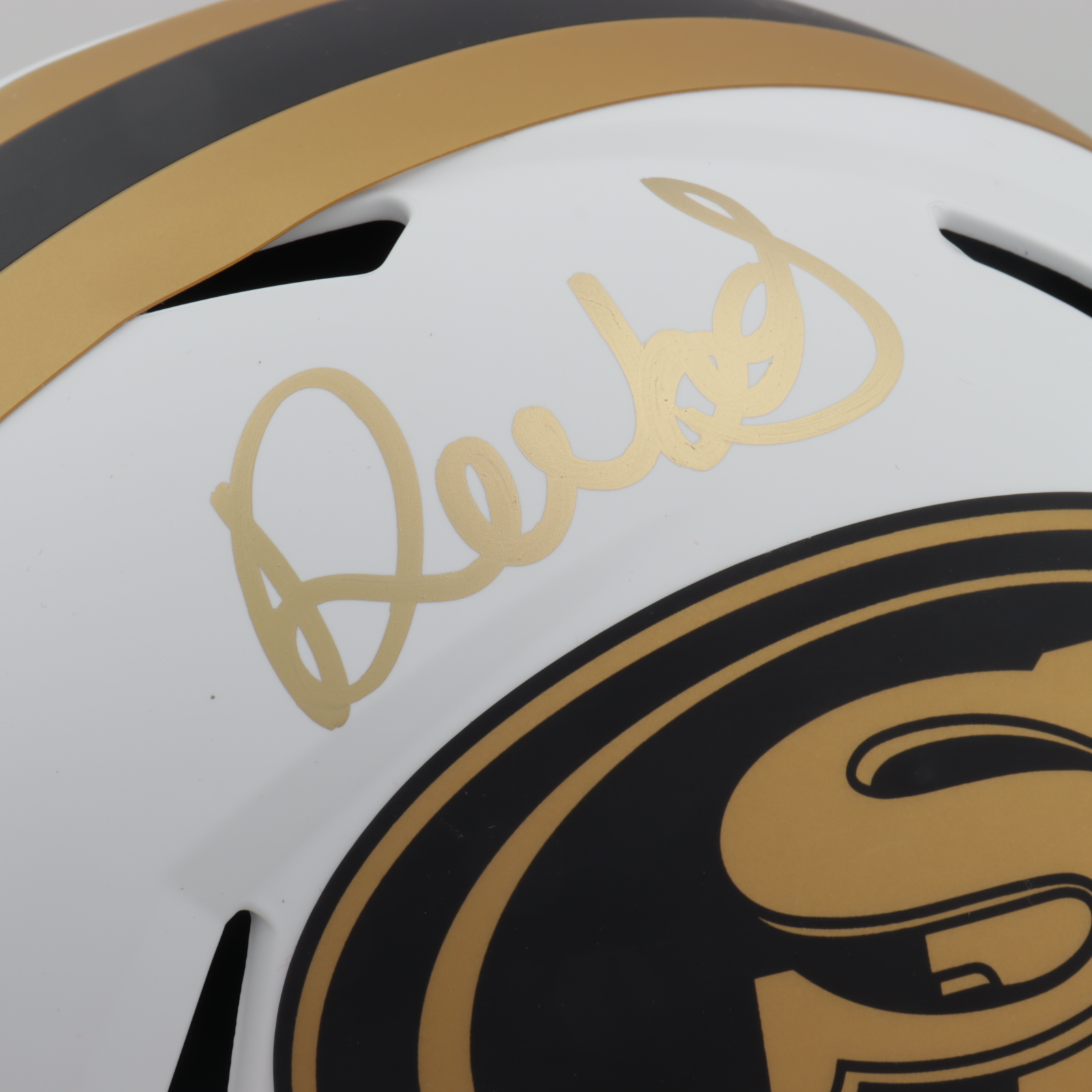 Riddell San Francisco 49ers full-size replica lunar eclipse alternate speed helmet. Hand-signed by Deebo Samuel.
