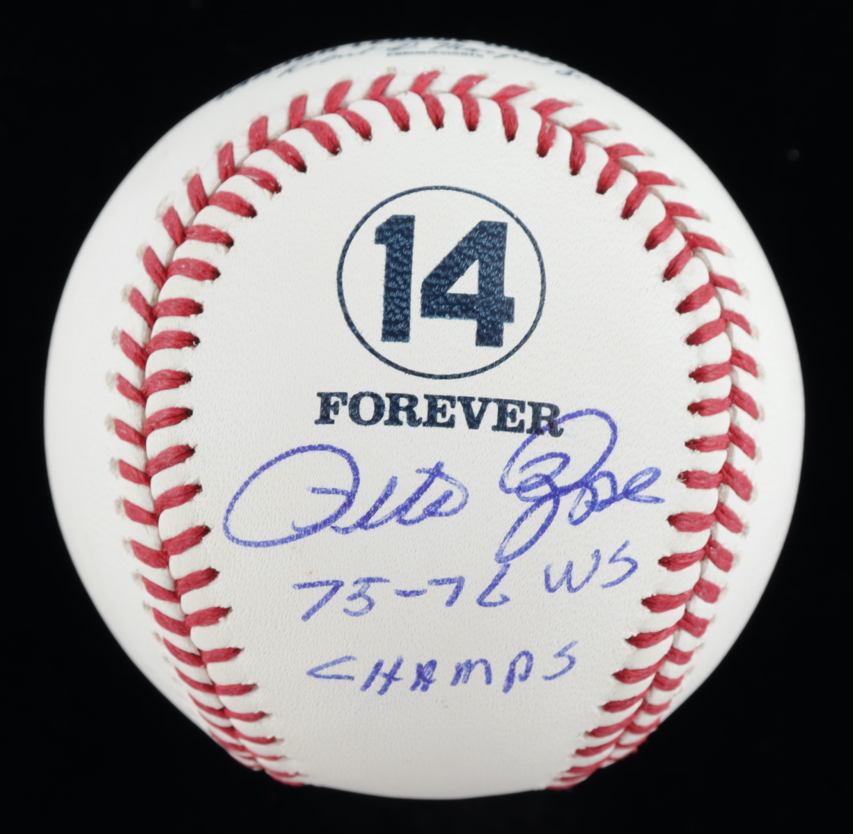 Pete Rose Signed OML Baseball Inscribed "75-76 WS Champs" (JSA COA)