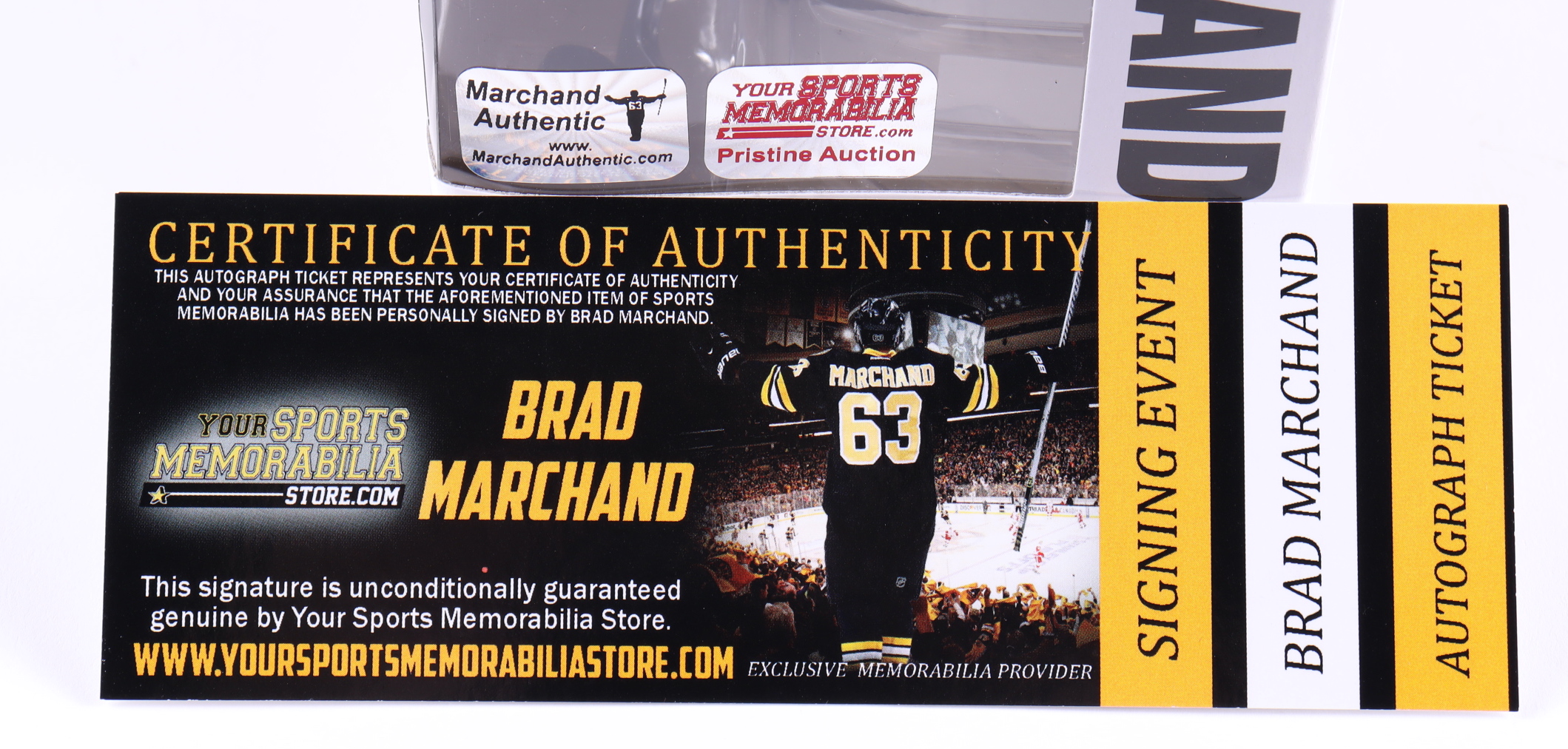 The lot / autograph(s) includes an official Your Sports Memorabilia Store Brad Marchand hologram and COA for authenticity purposes. Authentication: Marchand COA