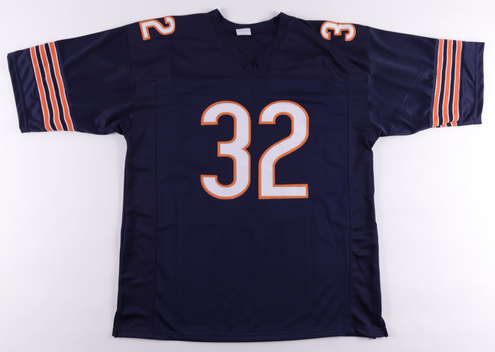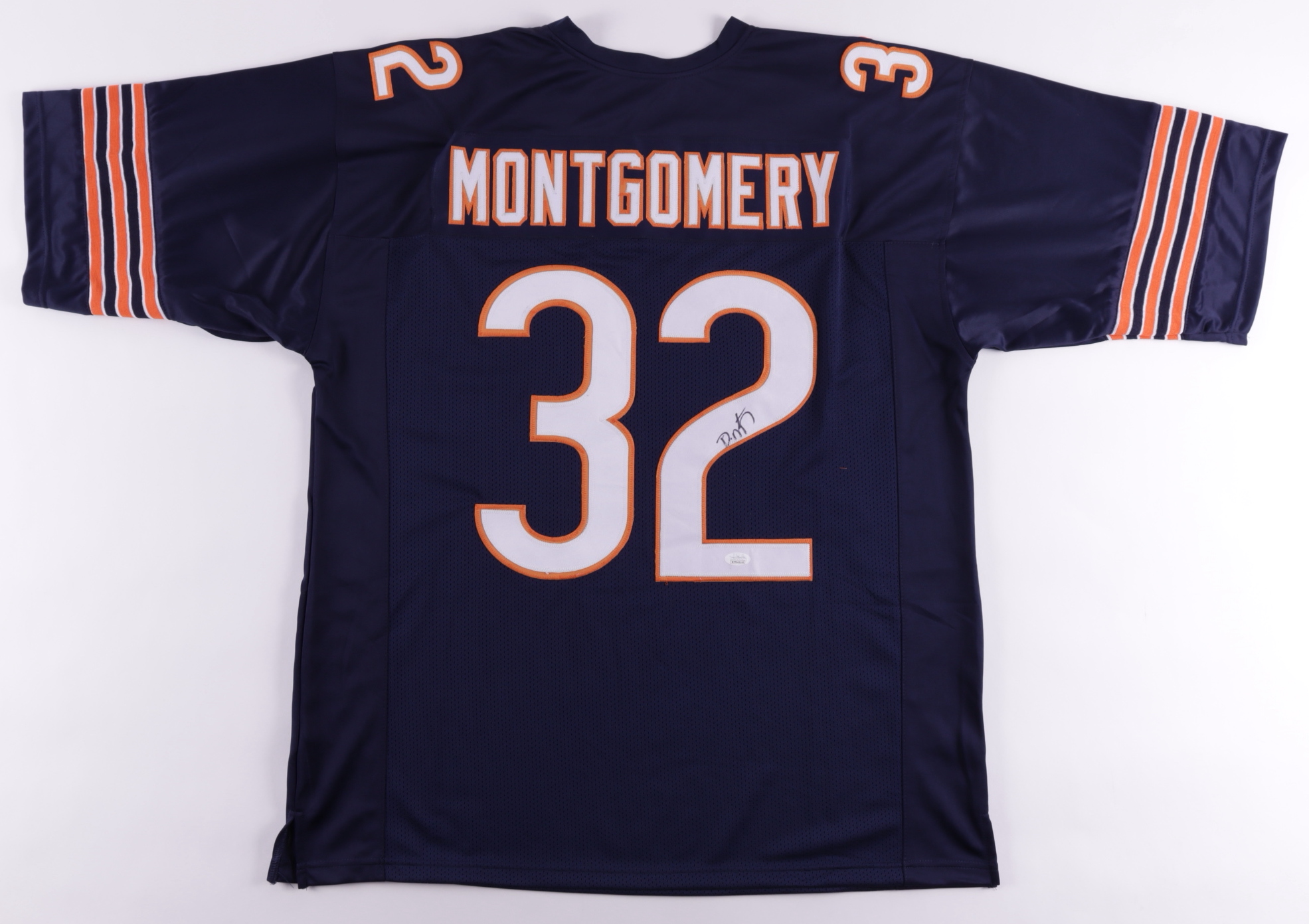 Custom on-field style jersey. Everything is sewn on, size XL. Has been hand-signed by David Montgomery.