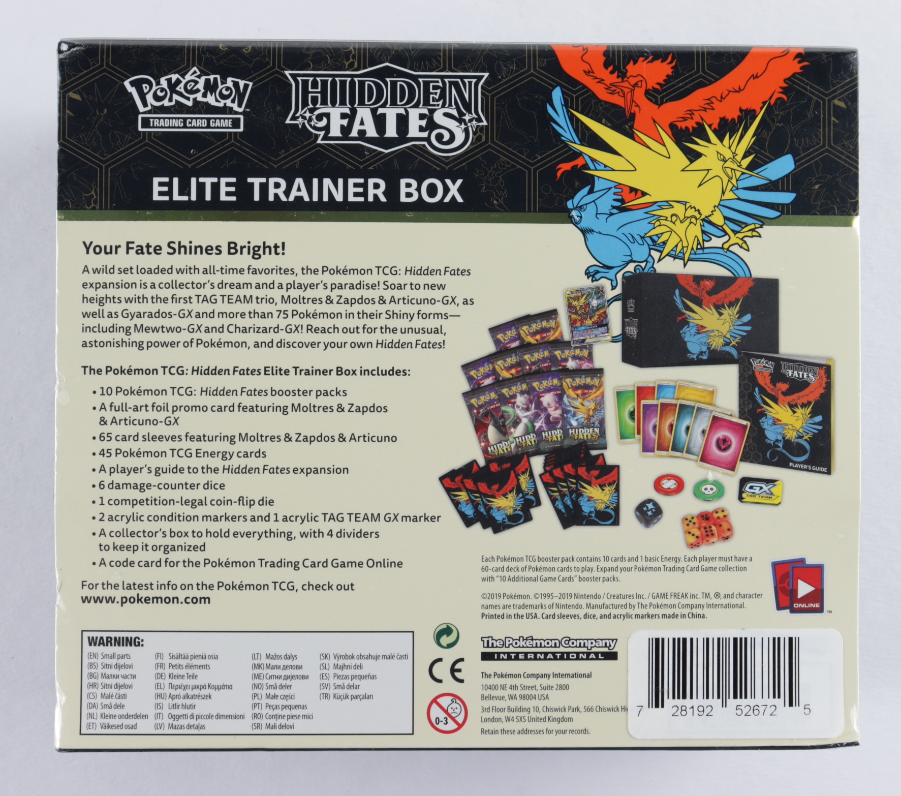 Pokemon TCG: Hidden Fates Elite Trainer Box with (8) Booster Packs.