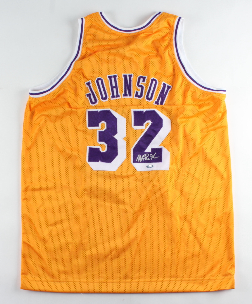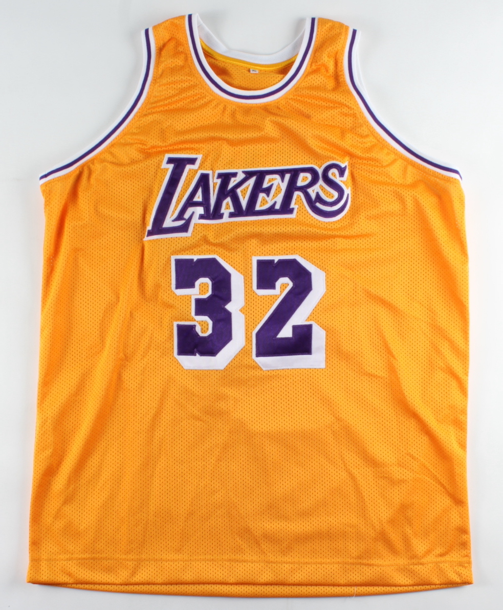 Custom on-court style jersey Everything sewn on, size XL. Hand-signed by Magic Johnson (HOF).