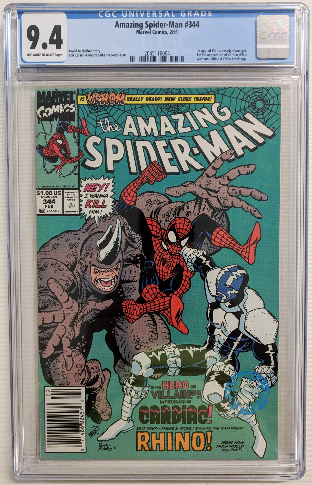 1991 "The Amazing Spider-Man" Issue #344 Marvel comic book. The comic book has been given a grade of (CGC) 9.4.