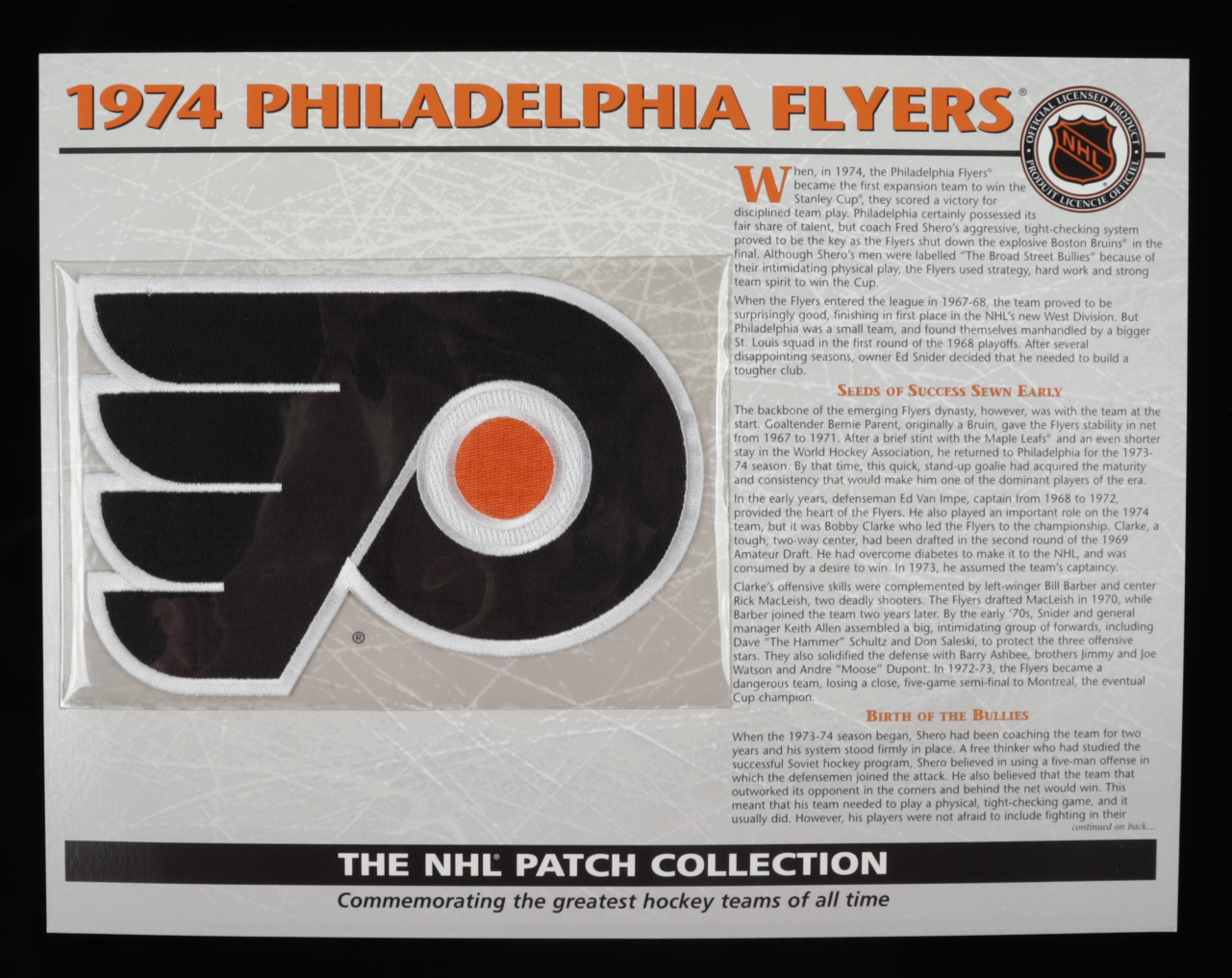 1974 Flyers "The NHL Patch Collections" Statistics Commemorative 10x14 Print With Patch