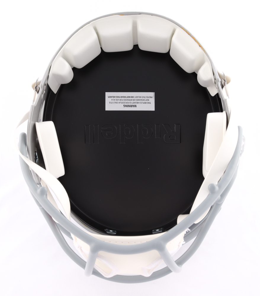 Riddell Ohio State Buckeyes full-size replica Speed helmet has been hand-signed by Justin Fields.