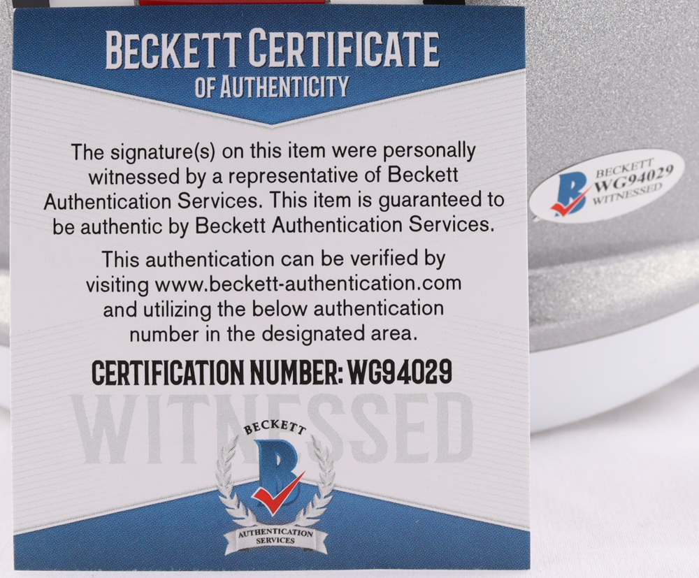 The lot / autograph(s) includes an official Beckett Authentication Services serially-numbered hologram and matching COA for authenticity purposes. The signing of this item was witnessed by Beckett.