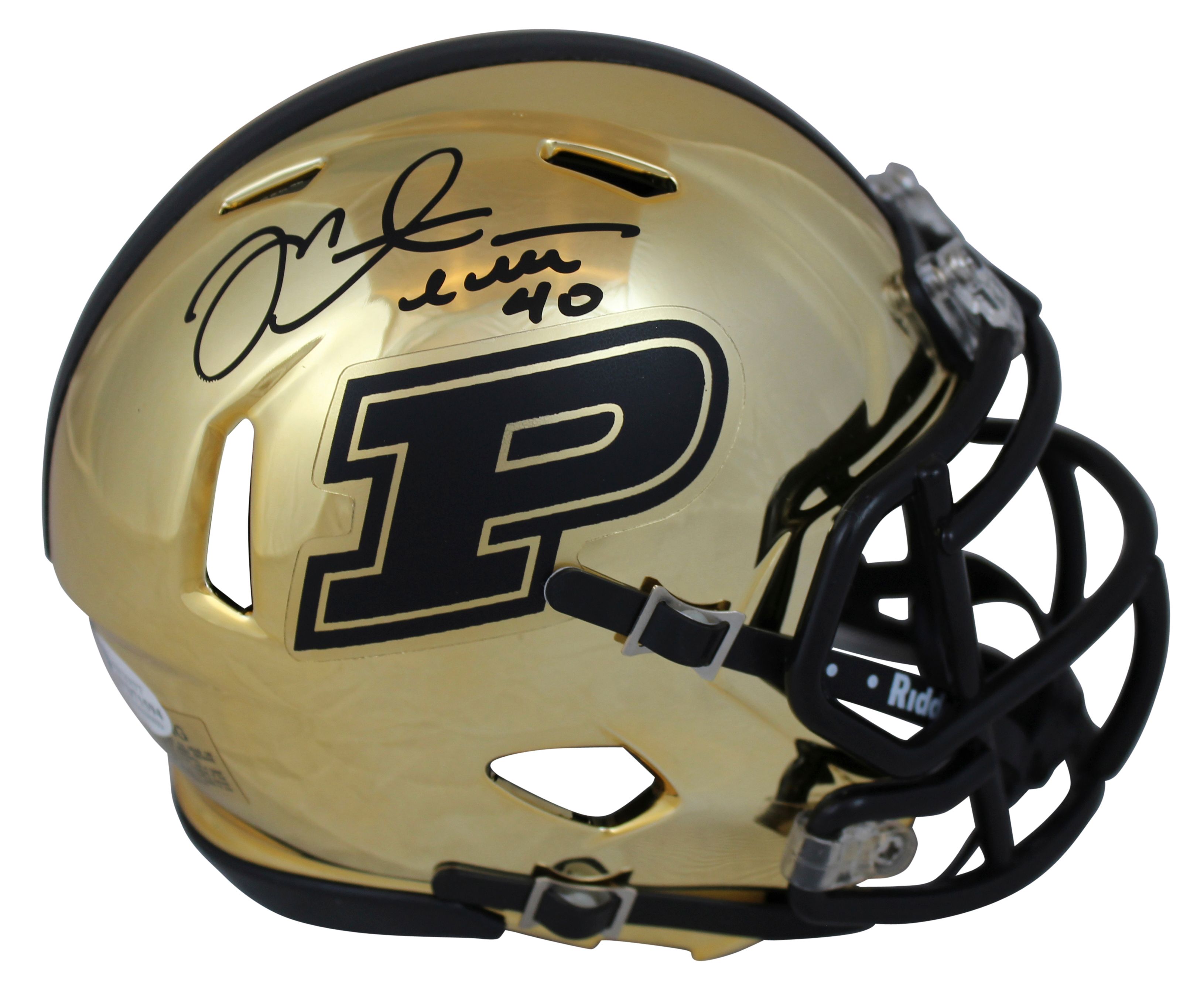 Riddell Purdue Boilermakers chrome speed mini helmet has been hand-signed by Mike Alstott.