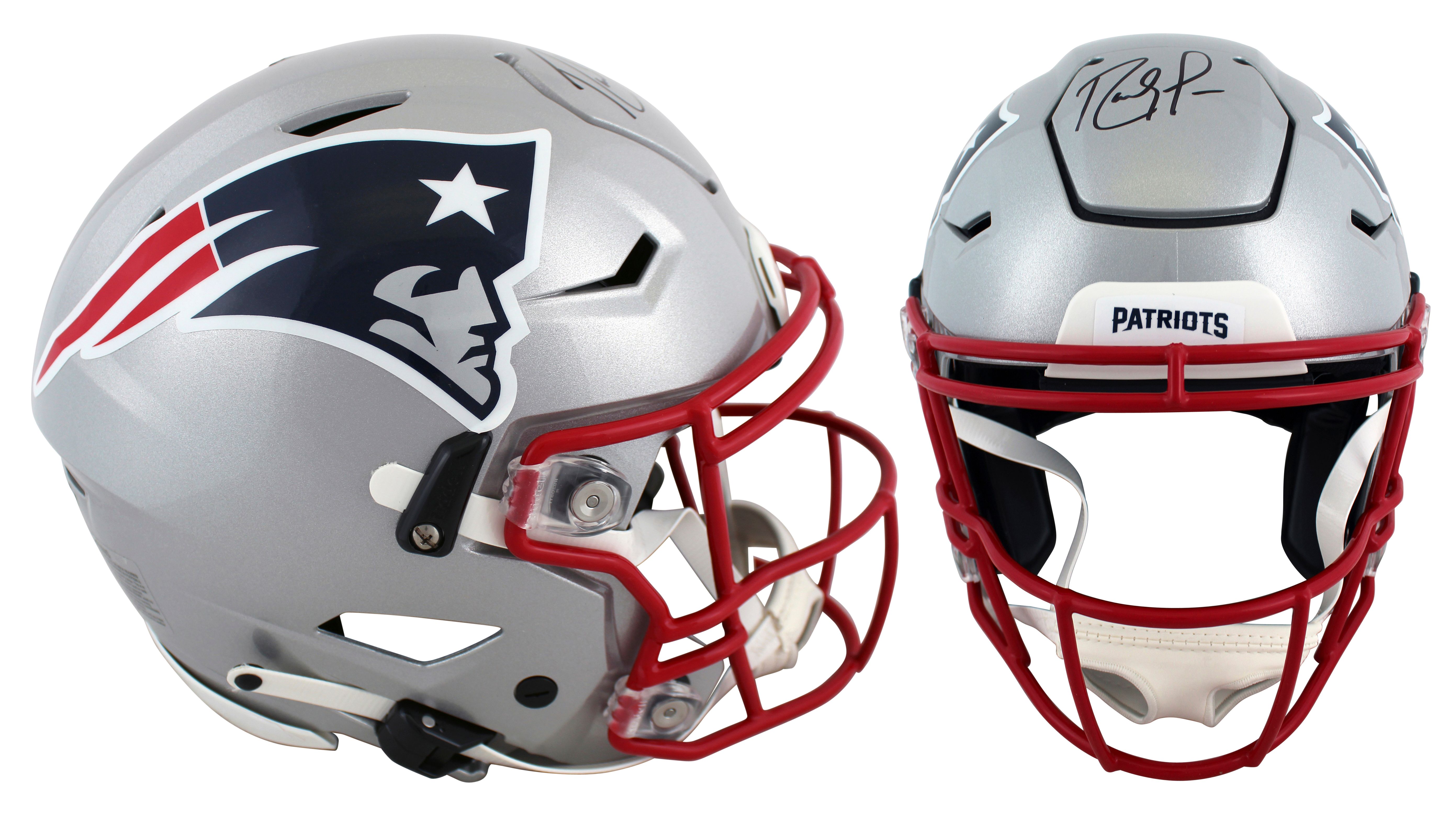 Riddell New England Patriots full-size authentic on-field SpeedFlex helmet. Hand-signed by Randy Moss (HOF).