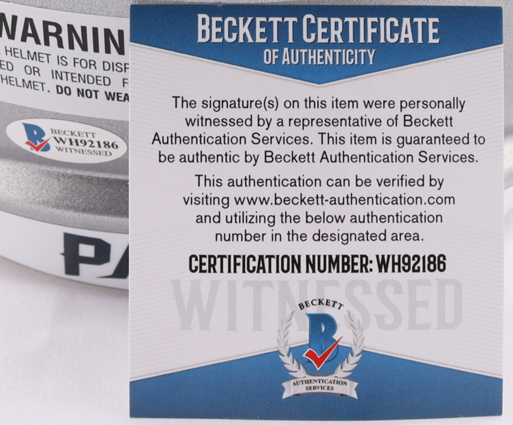 The lot / autograph(s) includes an official Beckett Authentication Services serially-numbered hologram and matching COA for authenticity purposes. The signing of this item was witnessed by Beckett.