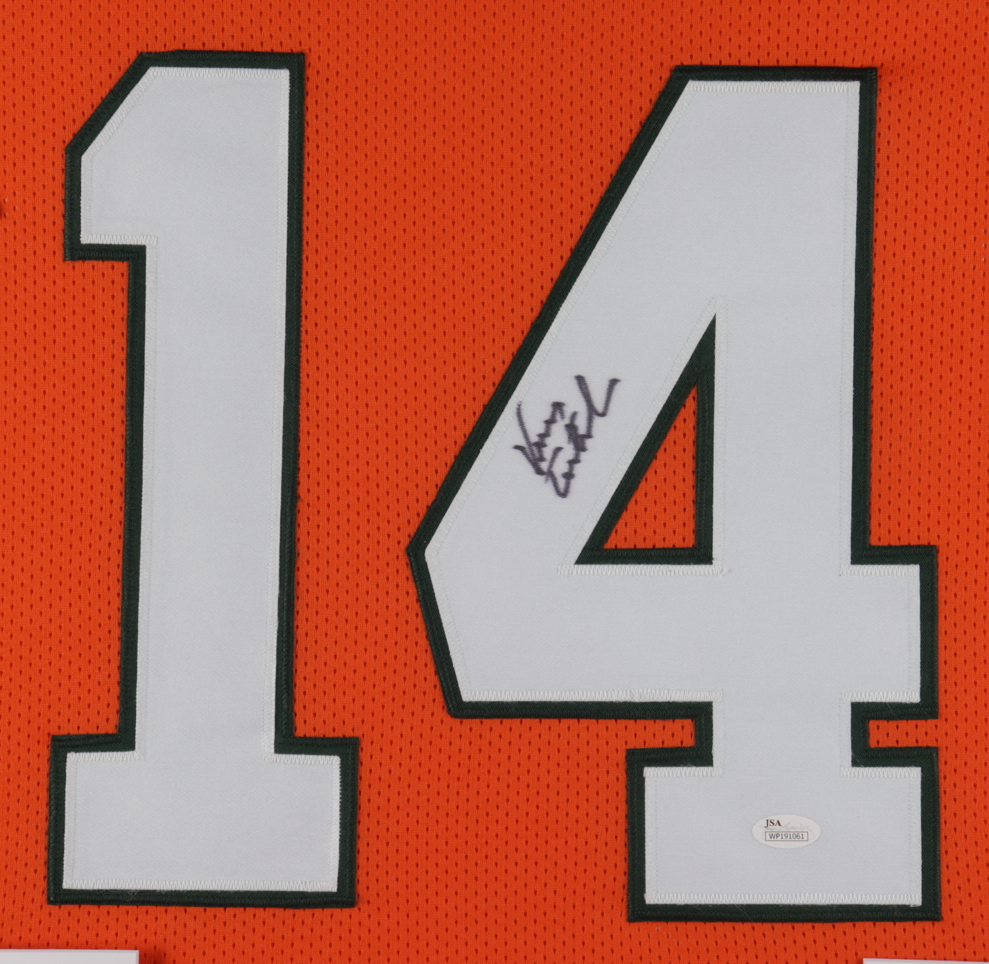 Custom frame measures 35" x 43" in size and features a jersey that has been hand-signed by Vinny Testaverde.