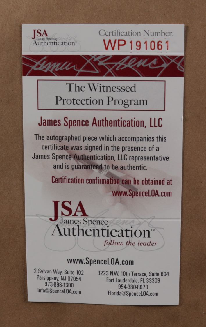 The lot / autograph(s) includes an official James Spence Authentication (JSA) hologram and matching COA for authenticity purposes. The signing of this item was witnessed by JSA.