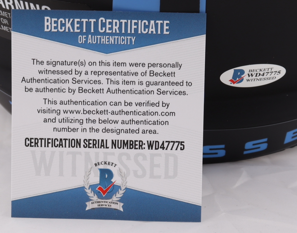 The lot / autograph(s) includes an official Beckett Authentication Services serially-numbered hologram and matching COA for authenticity purposes. The signing of this item was witnessed by Beckett.