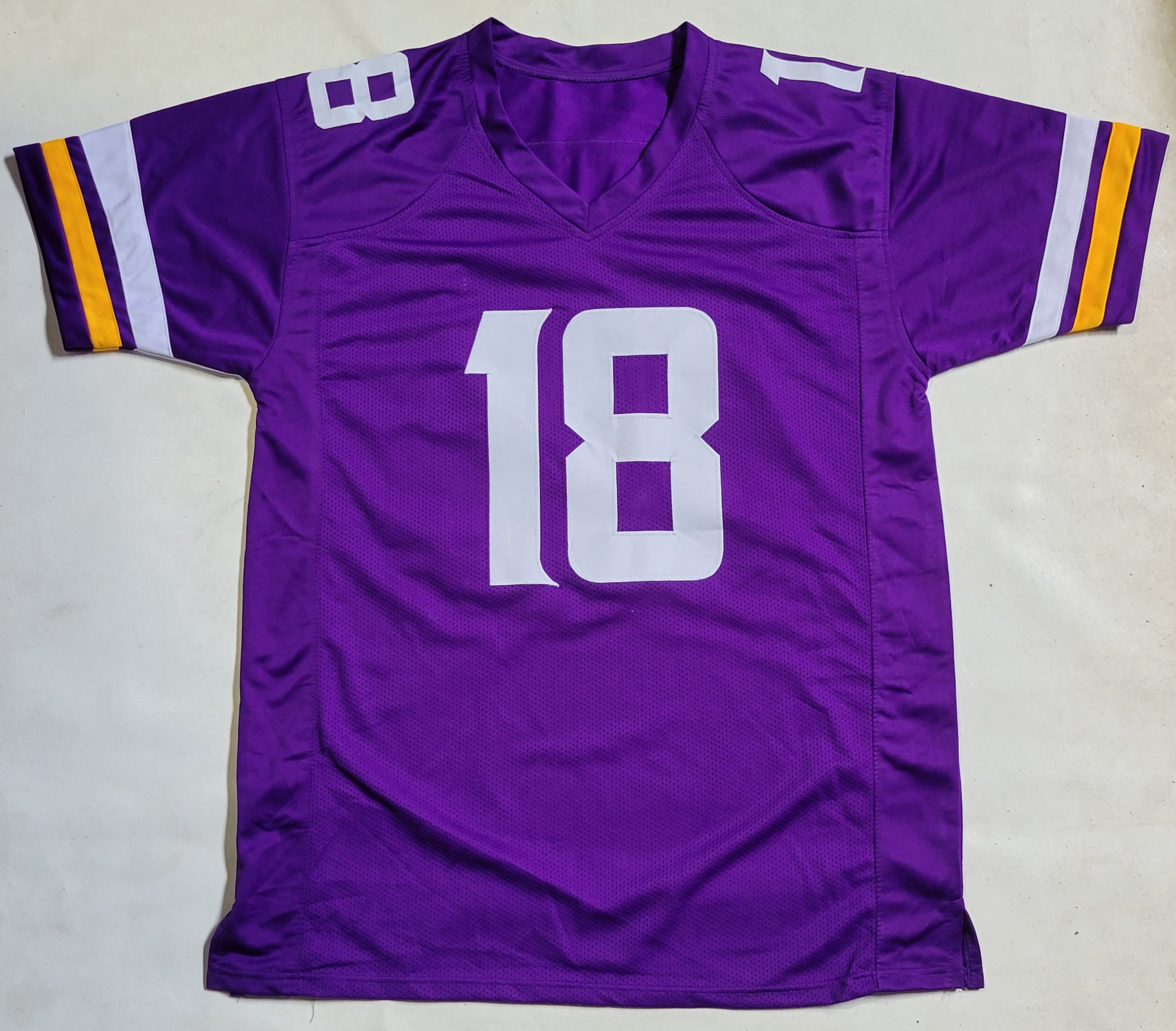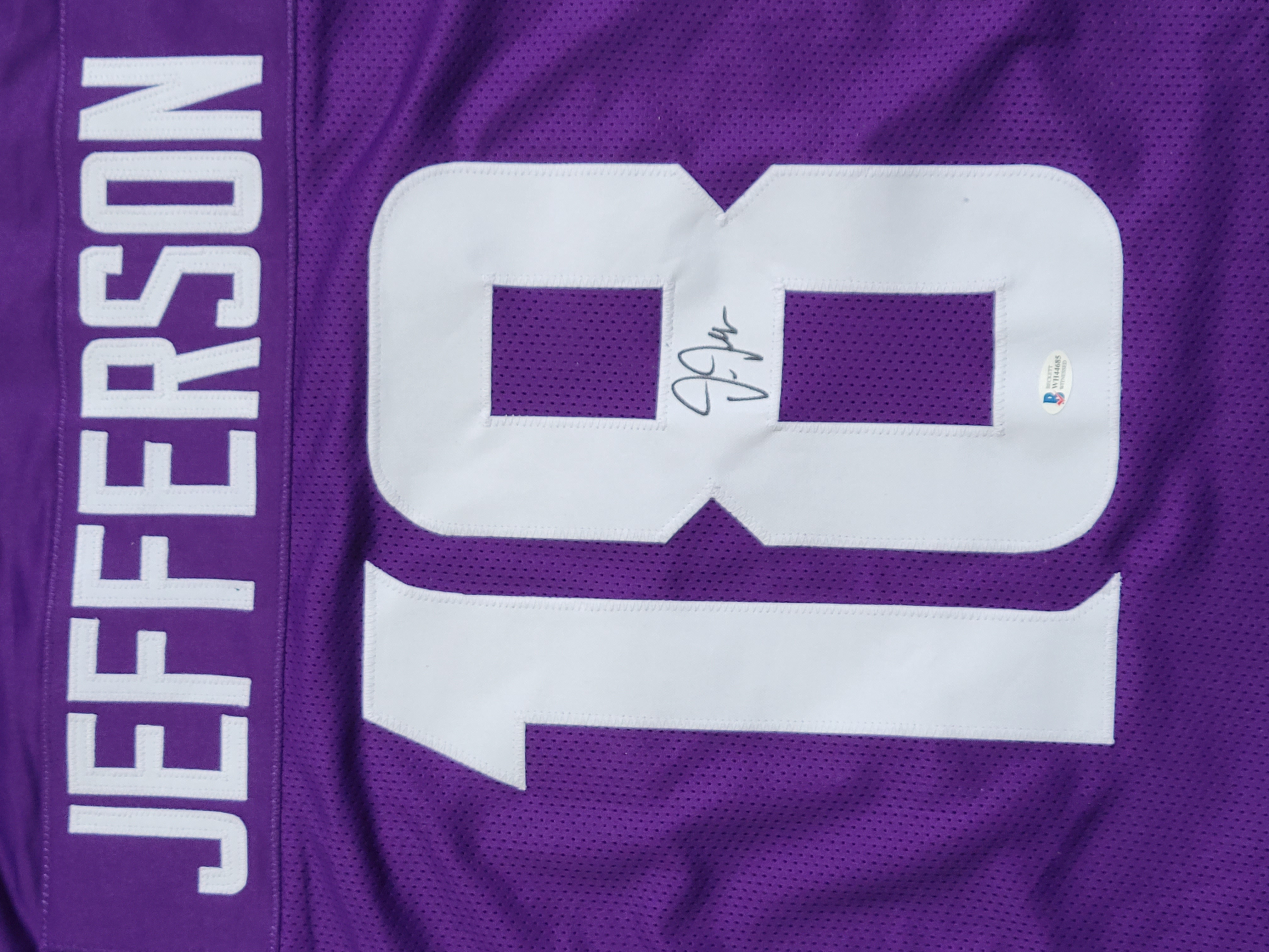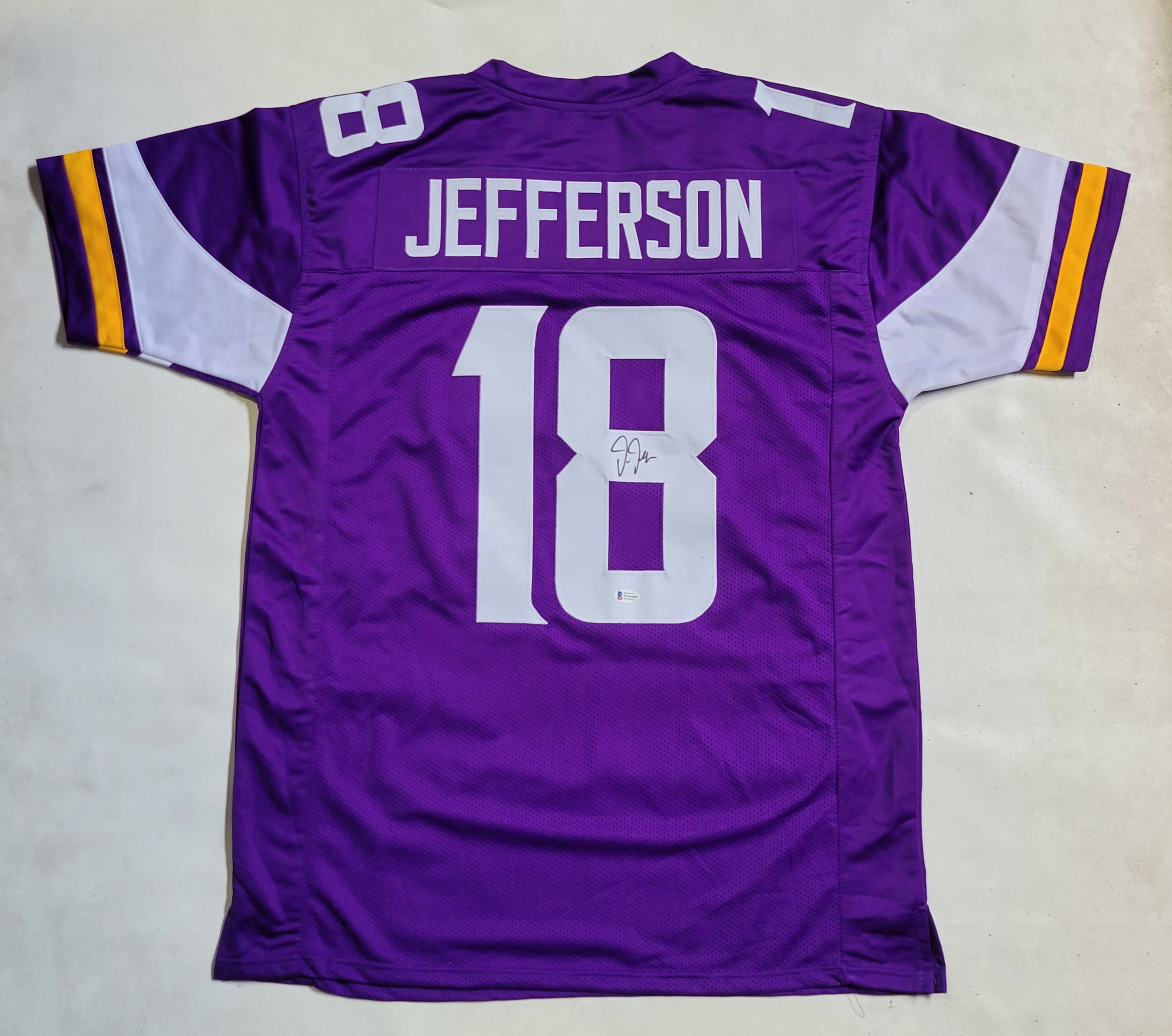 Custom on-field style jersey. Everything is sewn on, size XL. Has been hand-signed by Justin Jefferson.