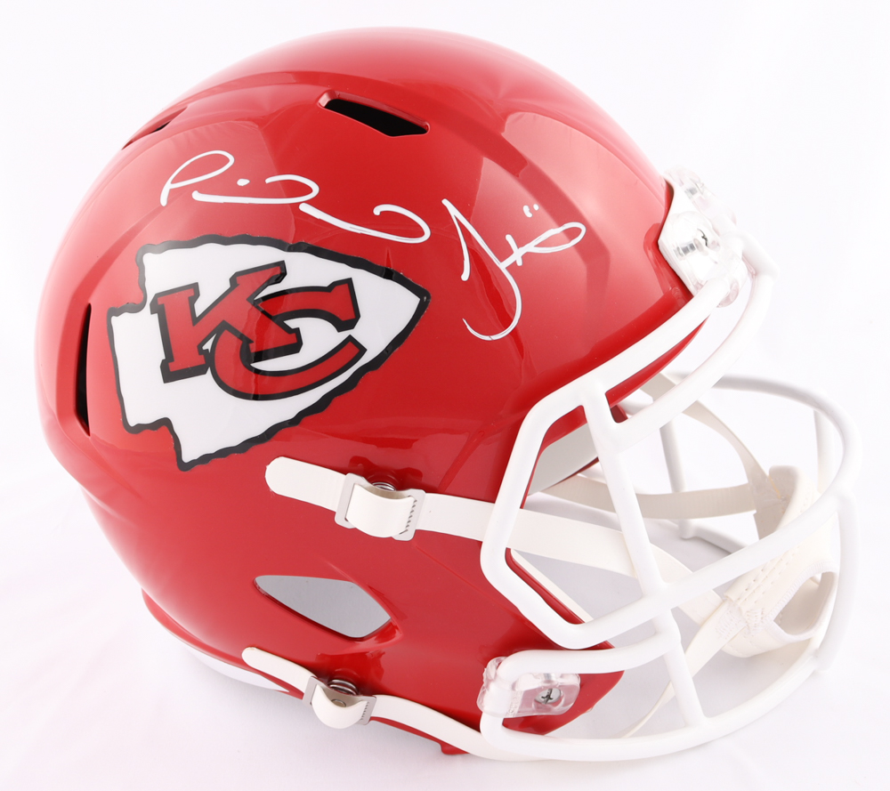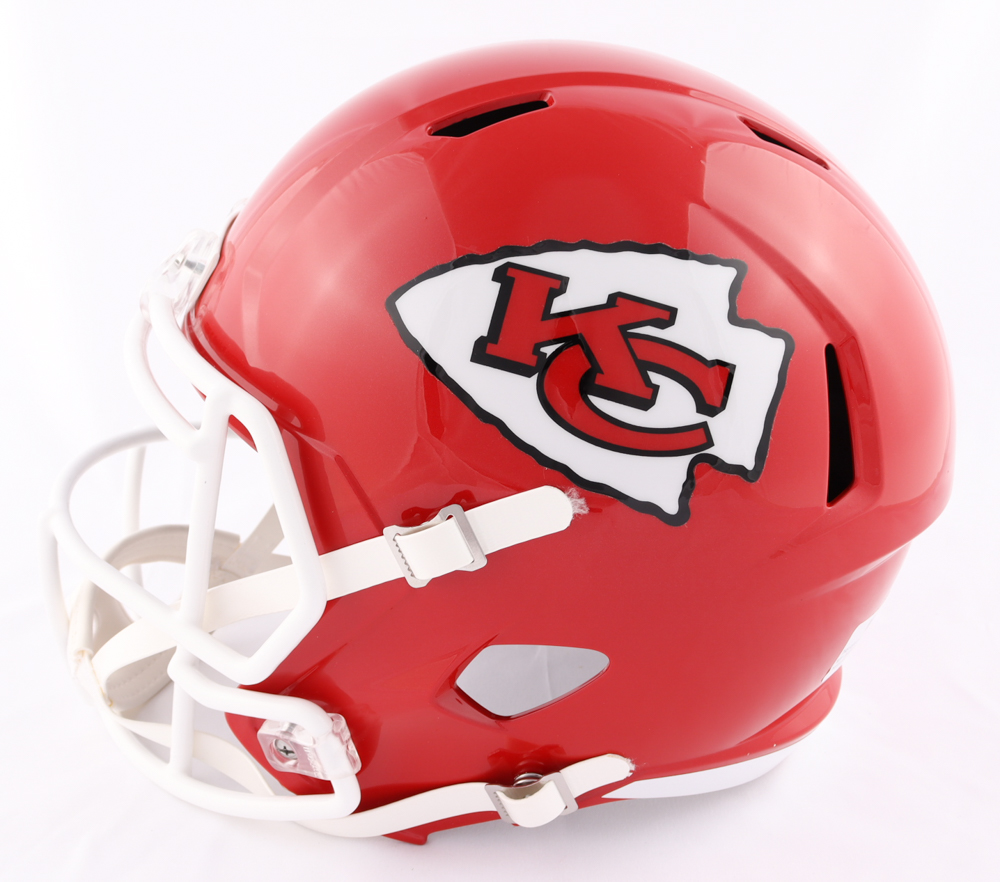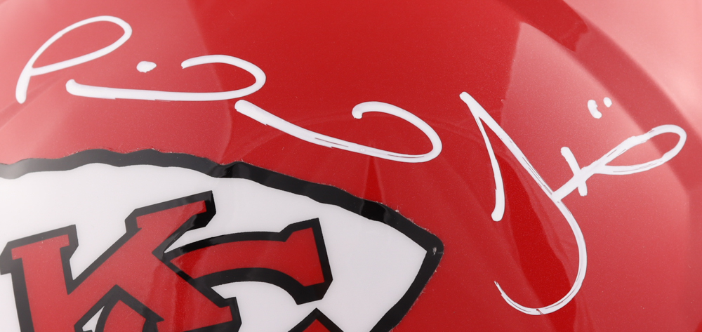 Riddell Kansas City Chiefs full-size Speed replica helmet. Hand-signed by Patrick Mahomes and Tyreek Hill.